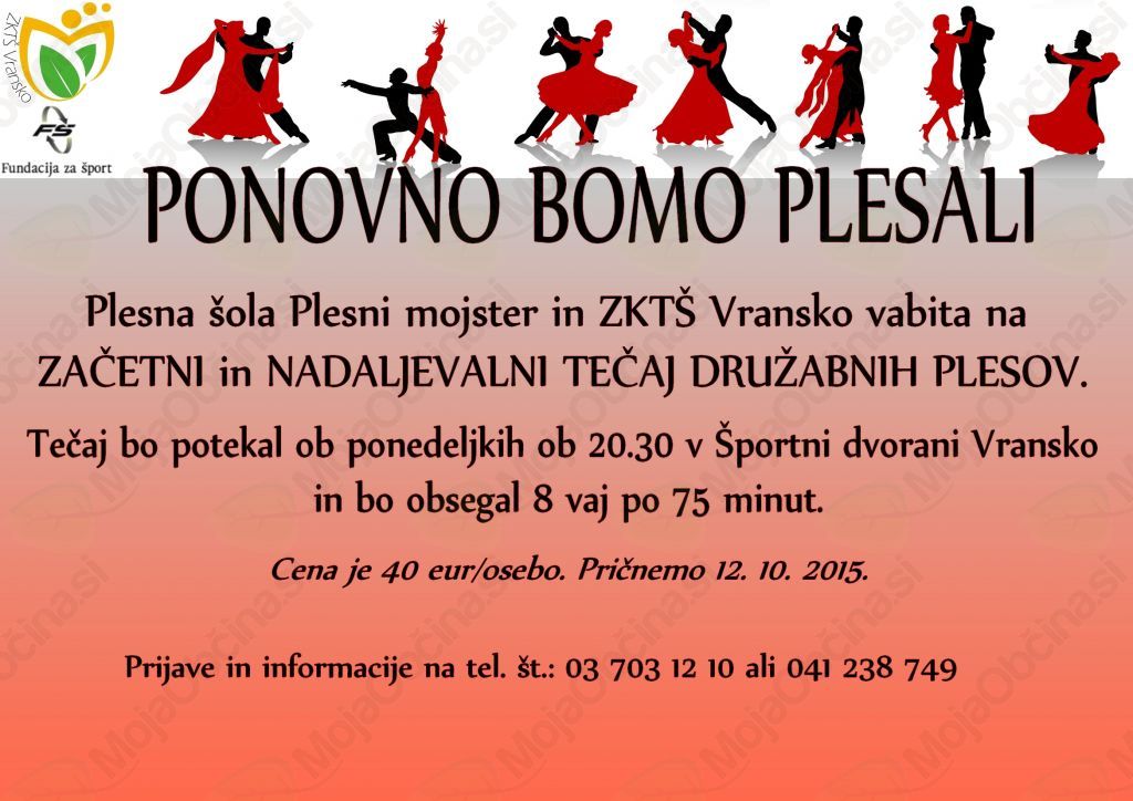 ZAČETNI IN NADALJEVALNI TEČAJ DRUŽABNIH PLESOV ZA ODRASLE