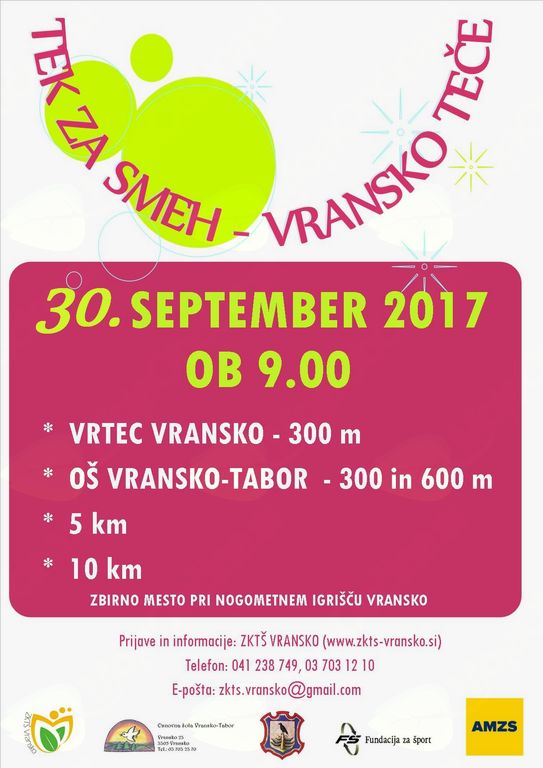 "TEK ZA SMEH-VRANSKO TEČE" BO V SOBOTO, 30. SEPTEMBRA, OB 9.00