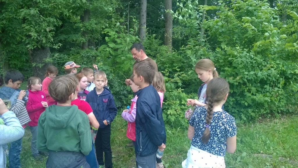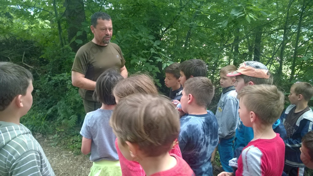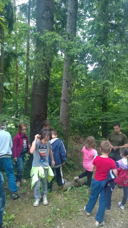 V četrtek, 2. 6. 2016, smo z razredom odšli na Gorico. Pri vznožju nas je že čakal gozdar Janez. Skupaj smo se po hribu navzgor odpravili v gozd. Na poti smo videli klešče hrošča rogača. Gospod Janez nam je povedal, da imata samec in samica različno velike klešče. Samica ima precej manjše klešče. Povedal nam je tudi, da so rogači zaščitena živalska vrsta. Malce pod vrhom Gorice smo se ustavili, gospod Janez nam je v podrtem smrekovem deblu, natančneje pod lubjem, pokazal lubadarja. Lubadar je majhen črn hrošč, ki napada smreke. Živo drevo se pred njim lahko ubrani z izločanjem smole. Ker smo bili v ponedeljek sami v gozdu in smo malo naprej od tega drevesa videli drevo, ki je imelo zanimivo lubje, smo se pozanimali, katero drevo je to. Povedal nam je, da je to divja češnja.