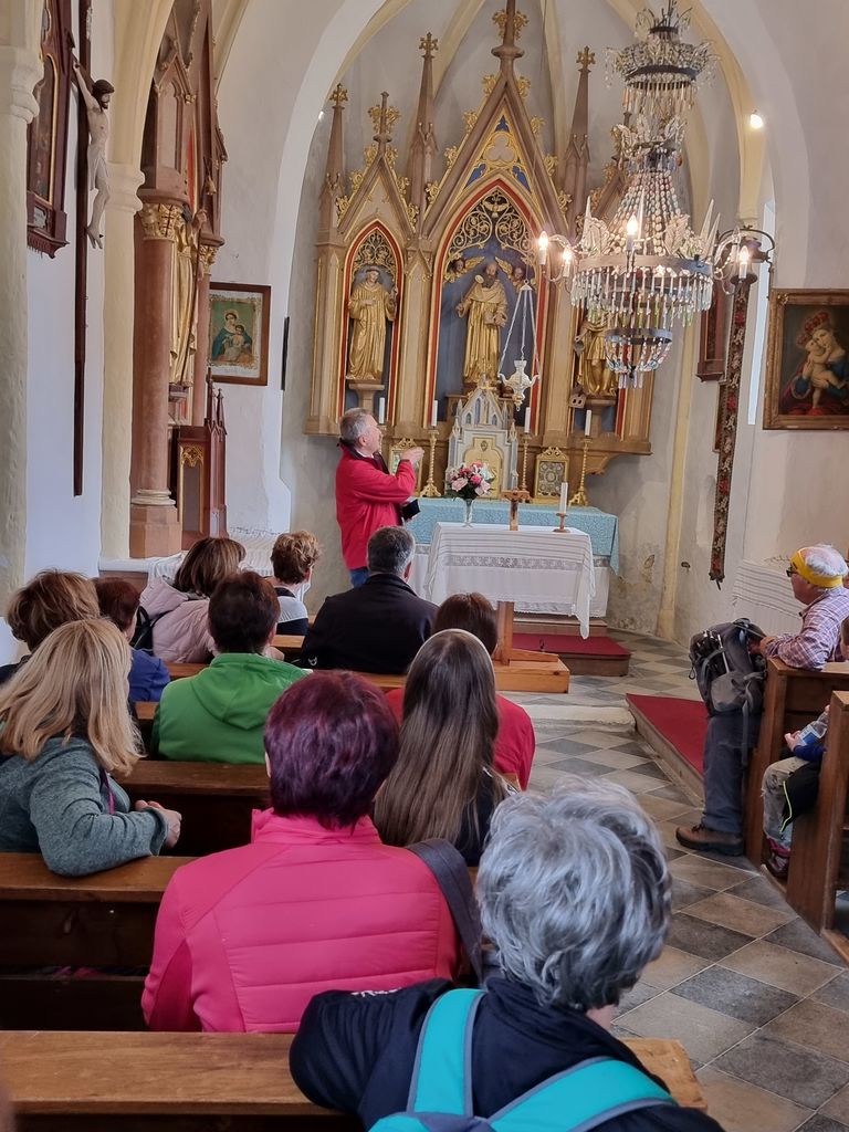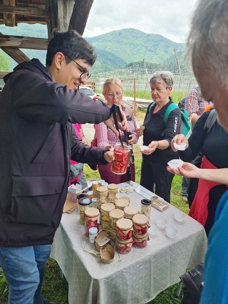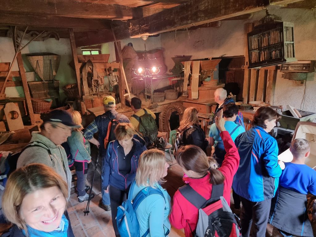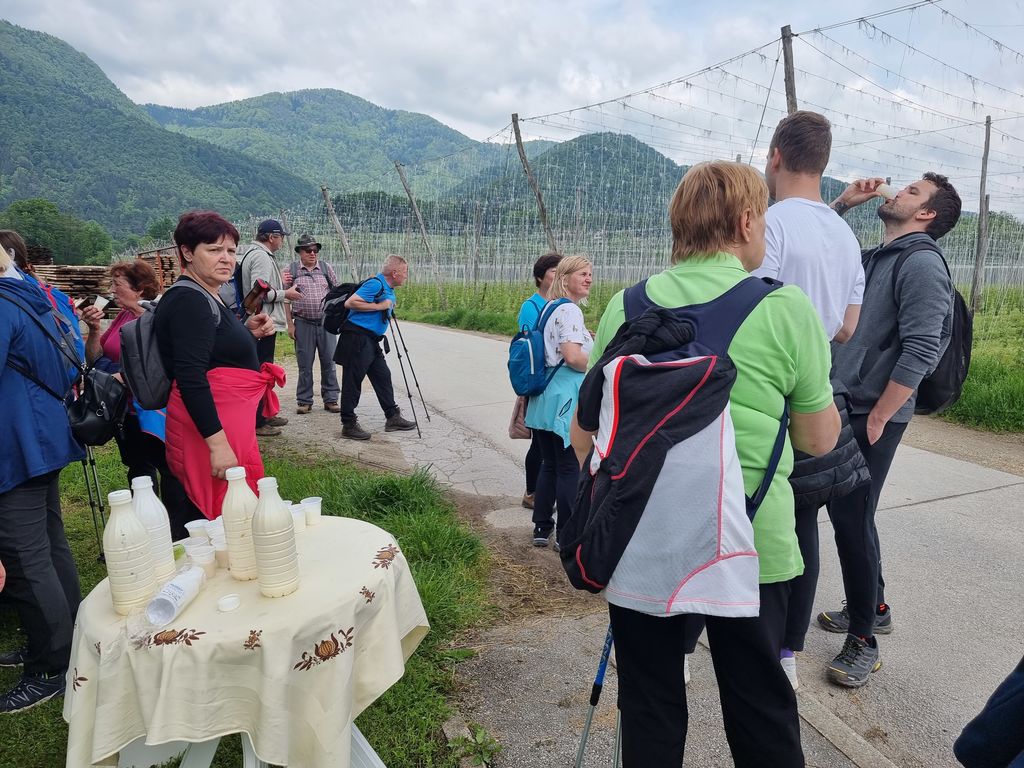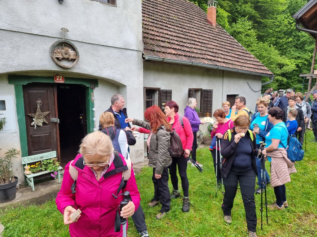 Temne oblake, ki so nas strašili zjutraj, je pregnalo sonce in kar naenkrat smo bili na odcepu za Selo. Ponovno so nas pričakale suhomesnate dobrote, kruh in kapljica rujnega. Peta postojanka je bila v Brodeh. Tam smo se sladkali z domačimi jogurti, ki jih zvesti pohodniki že poznajo, ter liofiliziranim sadjem in zelenjavo, ki sta bila za številne prisotne novost. Tudi največji junaki, ki so poskusili ščepec liofiliziranega zmletega česna, so priznali, da je res »gajsten«. Na poti do cilja smo se ustavili še v župnijski cerkvi sv. Mihaela, kjer nam je Primož Jerman predstavil še naše osrednje svetišče. Na tokratnem pohodu smo res v veliki meri spoznavali kulturno dediščino, kar je bilo še posebej zanimivo pohodnikom, ki ne poznajo naše občine. Na cilju pri Schwentnerjevi hiši smo tradicionalno zaključili z okusno mesno-zelenjavno enolončnico in nazdravili na uspešno prehojeno pot z obljubo, da se naslednje leto ponovno vidimo.