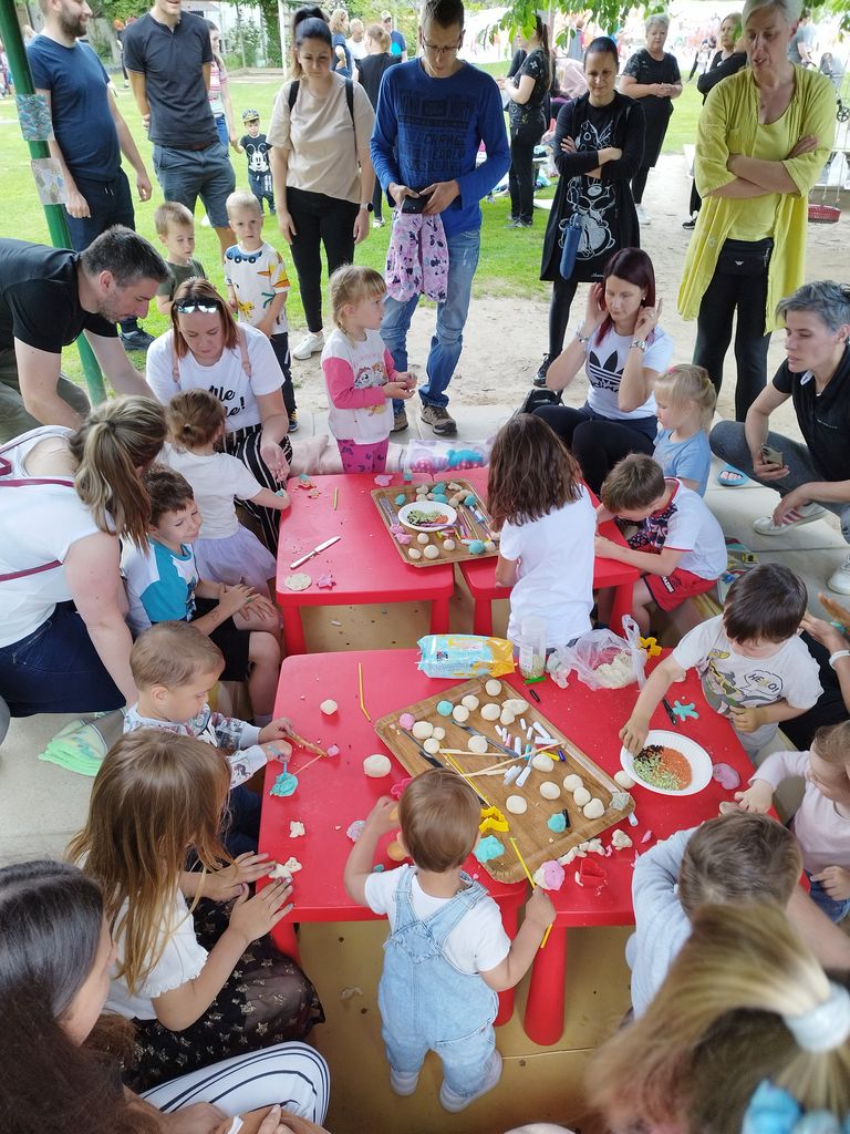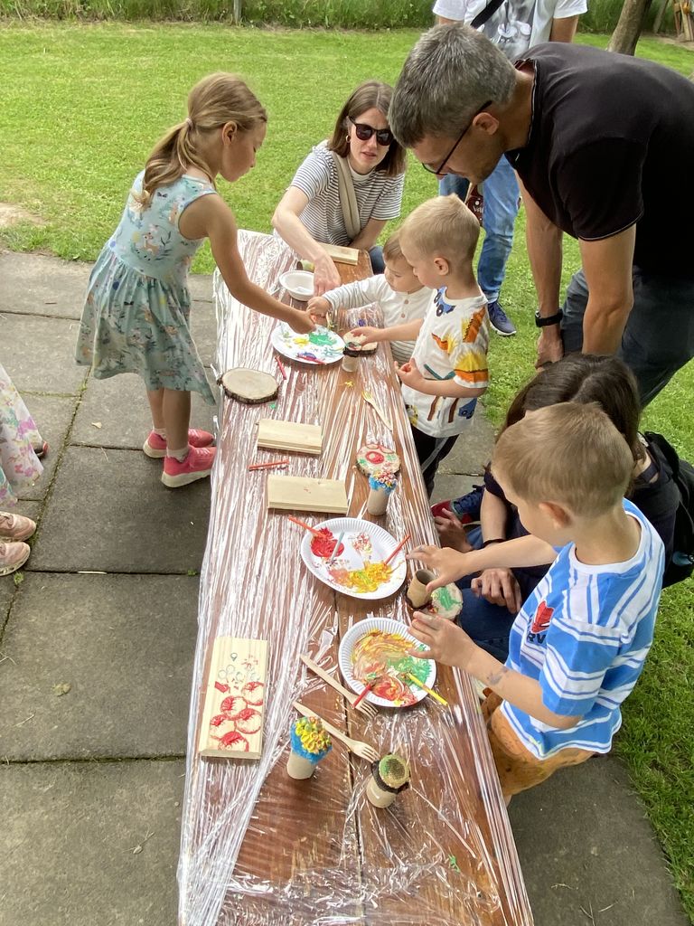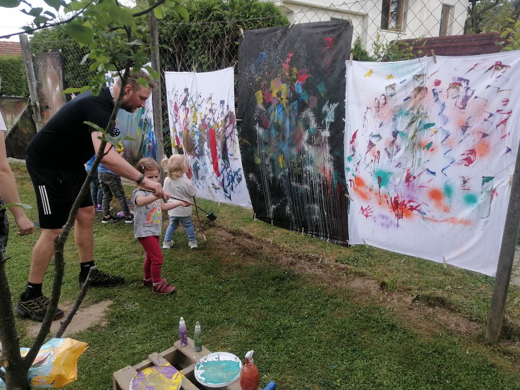 Svojo kreativnost so otroci izražali na raznovrstnih in kakovostnih likovnih postajah. Slikali so na različne formate tekstila, z laki krasili kamne ter pihali barvne motive z milnimi mehurčki. Risali so z ogljem, tiskali na les, oblikovali slano testo ter kiparili in z nestrukturiranimi materiali ustvarili gibljive kipe. Preizkusili so se pri izdelavi vitraža in prostorsko razporejali naraven in odpaden material.