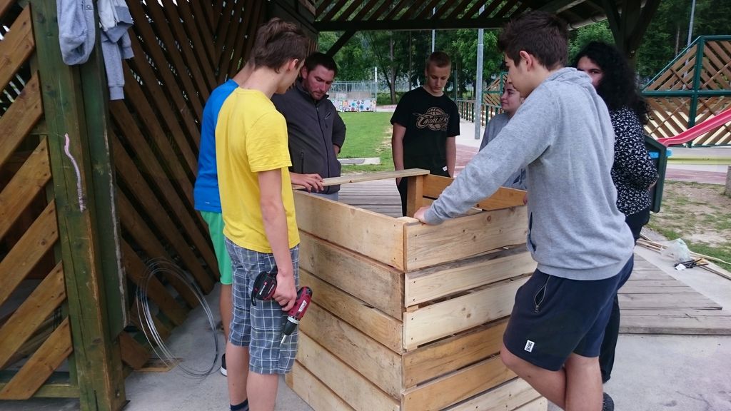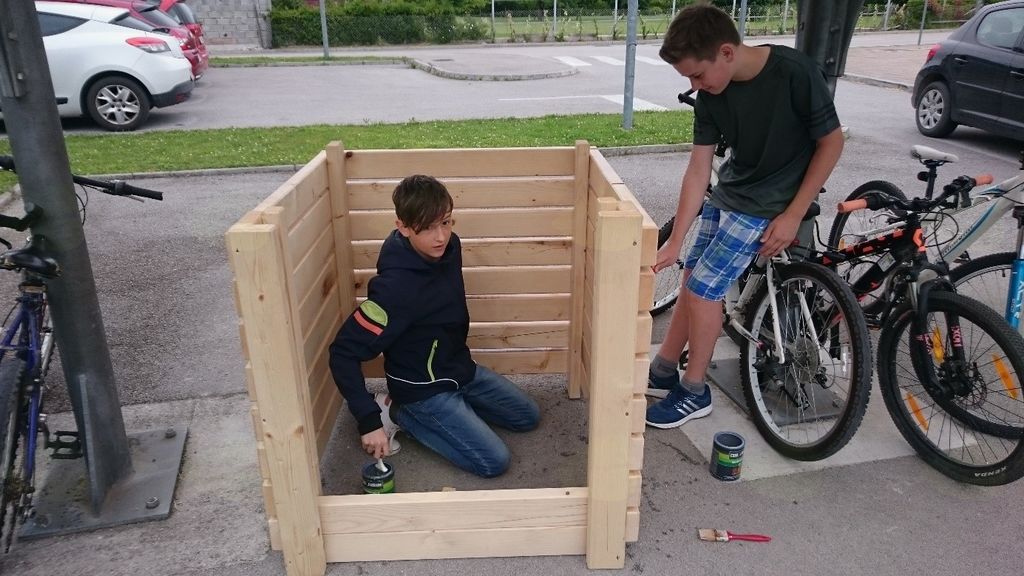 Šolski vrt smo v tem šolskem letu želeli nadgraditi in urediti tako, da smo postavili kompostnik. V naslednjem šolskem letu želimo na šoli vzpostaviti učinkovito zbiranje organskih odpadkov ter kompostiranje z izdelanim načrtom oz. opisom zbiranja organskih odpadkov, ki bi ga poznali vsi učenci in zaposleni na šoli. Pridobljeni kompost bomo uporabili za naravno gnojenje vrtnih gred in za vzgojo lastnih sadik zelenjave. Material za en kompostnik nam je sofinanciral Inštitut za trajnostni razvoj, za drugega sta nam les podarila Jože Pikelj in Emilijan Kapus. Že obdelan les je bilo potrebno pobarvati z okolju prijaznimi barvami ter sestaviti glede na načrt, neobdelan les pa izmeriti, razžagati, pobarvati in sestaviti. Kompostnika so izdelali učenci 8. razredov pri pouku tehnike in tehnologije pod mentorstvom Jožeta Toplaka in Zvonke Cencelj, za kar se jima iskreno zahvaljujemo.  Na šoli je v okviru Inštituta za trajnostni razvoj potekala tudi delavnica Šolski ekovrtovi, ki jo je vodila permakulturna strokovnjakinja, ga. Alenka Henigman. Na delavnici smo si vrt ogledali in razmišljali o njegovi nadgradnji in izboljšavi.