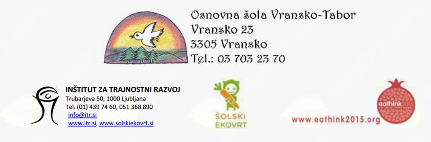 Zapisala mentorica projekta Šolski ekovrt na OŠ Vransko-Tabor, Nataša Pečovnik, prof. RP.