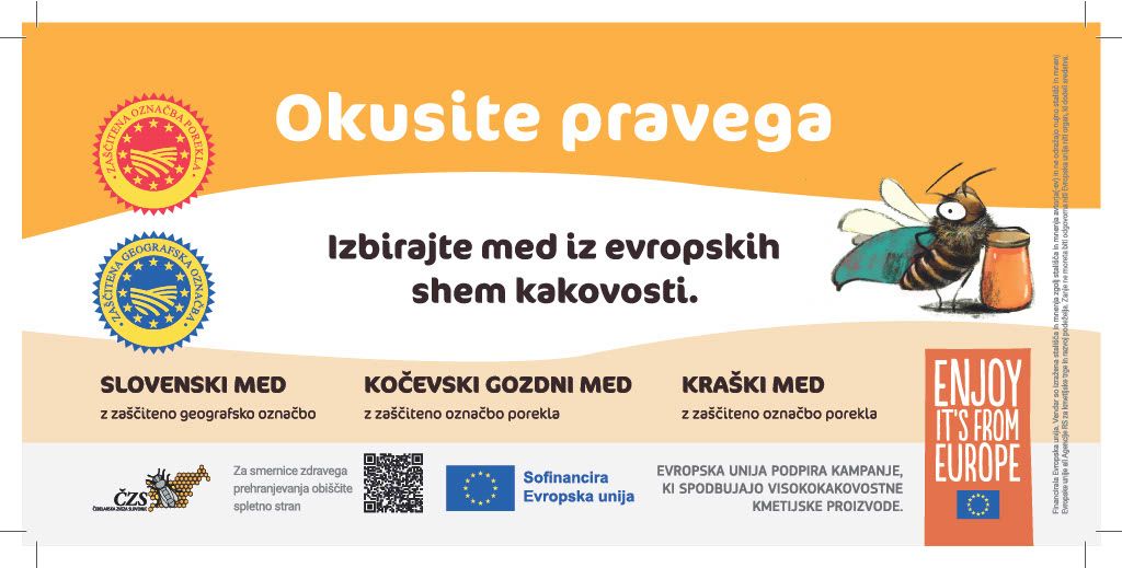 Zaradi številnih medov z vprašljivim poreklom na trgu potrošniku svetujemo, da kupuje med pri čebelarju iz svojega lokalnega okolja. Ob nakupu na trgu pa predlagamo, da ste pozorni na državo porekla. Svetujemo vam, da izberete državo porekla: SLOVENIJA! Večina slovenskih čebelarjev toči med v posebne kozarce za med slovenskega porekla, katerega poreklo in kakovostne parametre v skladu s pravilnikom kontrolira ČZS. Korak dlje pa lahko storite z nakupom medu pri čebelarju, ki je tudi koristnik evropske sheme kakovosti, saj je višja kakovost njegovega medu dodatno preverjena. Med, ki je vključen v sheme kakovosti, prepoznamo po prelepki na pokrovu kozarca, ki vključuje evropski simbol kakovosti »zaščitena geografska označba« za Slovenski med ali »zaščiteno označbo porekla« za Kraški in Kočevski gozdni med. Seznam čebelarjev, ki pridelujejo med iz shem kakovosti, je dostopen preko QR-kode. V Sloveniji imamo odlično čebelarsko prakso in še vedno biotsko zelo pestro in neokrnjeno naravo. Ta dva dejavnika sta osnova za to, da večina medu naših čebelarjev ustreza višjim kriterijem kakovosti v primerjavi s standardi, ki jo opredeljuje Evropska direktiva o medu. Tako med slovenskih čebelarjev brez težav dosega tudi parametre iz pravilnikov evropskih shem kakovosti.