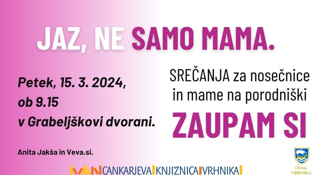 Se kdaj razjočeš? Premalokrat/prevečkrat/ravno prav? Solze, jeza, žalost, veselje, sreča, zadovoljstvo in brezpogojna ljubezen. Vse to in še veliko več je starševstvo. Za ženske ustvarjamo brezplačna mesečna srečanja, ki polnijo dušo in telo. Brezplačna srečanja so ženski krogi za nosečnice in mame na porodniški v katerih lahko pustiš vse česar ne potrebuješ in se vrneš domov mirnejša. Če te pokliče druženje z mamicami dobrodošla, da se nam pridružiš. Skupaj zmoremo več. Ni ti treba biti sama za vse. Anita Jakša, idejna vodja projekta Varuh Narave in Veva.si. Tema v marcu: Jaz, ne samo mama.