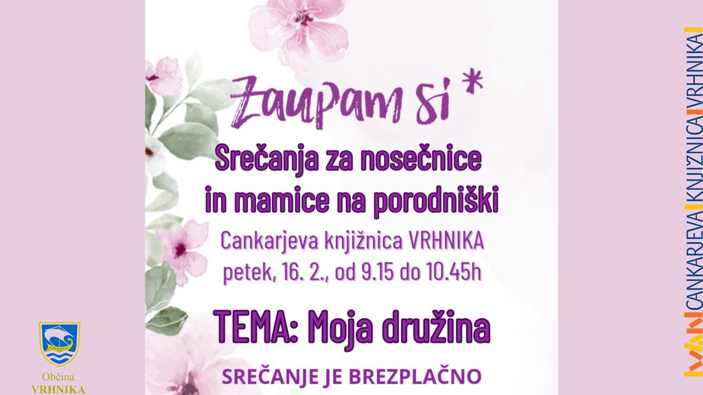 Narave in Veva.si. Tema v februarju: Moja družina. Vabljene v petek, 16. 2. 2024, ob 9.15 v Grabeljškovo dvorano.