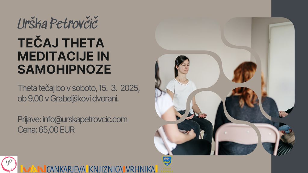 praktik in NLP mojstrica. Theta tečaj bo v soboto, 15. 3. 2025, ob 9.00 v Grabeljškovi dvorani. Prijave
