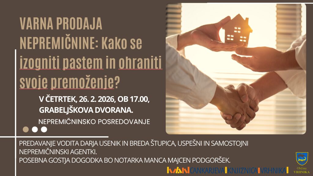 Predavanje vodita Darja Usenik in Breda Štupica, dve uspešni in samostojni nepremičninski agentki z dolgoletnimi izkušnjami pri prodaji stanovanj, hiš in zemljišč. Skozi praktične primere bosta predstavili najpogostejše napake prodajalcev ter pokazali, kako zaščititi svoje premoženje. Dogodek bo v četrtek, 26. 2. 2026, ob 17.00 in je namenjen vsem, ki razmišljajo o prodaji nepremičnine ali jih zanima, kako se izogniti pravnim, finančnim in postopkovnim pastem. Poseben poudarek bo na realnih dilemah prodajalcev in konkretnih rešitvah iz prakse. Posebna gostja dogodka je notarka Manca Majcen Podgoršek, ki bo predstavila vlogo notariata pri prodaji nepremičnin, problem demence in ključne pravne vidike varne prodaje.