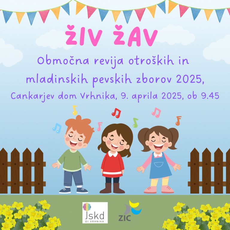 To sredo 9.4. 2025 ob 9:45 se bodo v Cankarjevem domu Vrhnika na Območni reviji otroških in mladinskih pevskih zborov - ŽIV ŽAV predstavili šolski zbori občin Vrhnika in Log - Dragomer. Nastopilo bo kar 9 zborov, ki jih bo ocenjeval strokovni spremljevalec, priznani zborovodja Matej Penko, ki je leta 2020 tudi prejel Gallusovo plaketo Javnega sklada Republike Slovenije za kulturne dejavnosti. Prireditev je zaprtega tipa in namenjena zgolj osnovnim šolam območne izpostave Vrhnika.