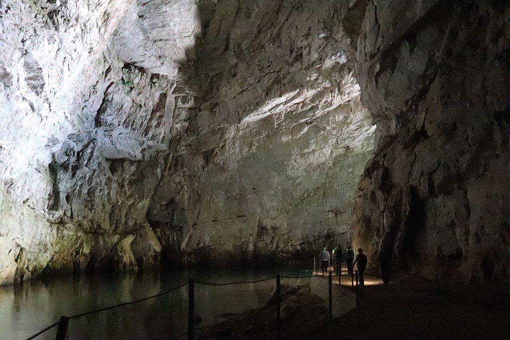 Pot smo nadaljevali mimo obnovljenega Ravbarjevega stolpa do Planinske jame, ki spada med najdaljše slovenske vodne jame. Skozi veličasten 20 metrov širok in osem metrov visok vhod v jamo nas je pospremilo bučanje reke Unice. Ta nastane 500 metrov globlje v jami, kjer se združita reki Rak, ki priteče iz Rakovega Škocjana in Pivka, ki priteče iz Postojnske jame.
