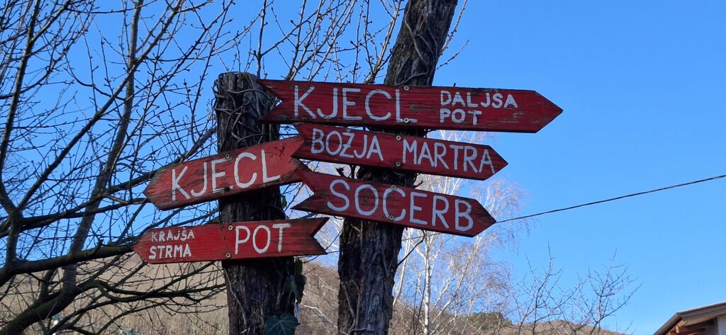 Vremenska napoved za današnji pohod je bila odlična, sončno vreme z visokimi temperaturami. Za cilj smo si izbrali dva vrhova, Sveti Socerb in Kjecl oz. Orehovški Triglav. Izhodišče pohoda je bilo v slikoviti vasi Podnanos. Najprej je našo pozornost pritegnil vaški dvorec Zajčji grad, zgrajen konec 17. stoletja, ki se nahaja ob cesti proti Orehovici. Iz vasi smo se vzpeli na Sveti Socerb, ki je najvišji izmed bližnjih vzpetin, saj leži na nadmorski višini 555 m in zato ponuja čudovit razgled po zgornji Vipavski dolini od Razdrtega pa vse do Ajdovščine in okoliških vasi, raztresenih po Vipavskih brdih. Na vrhu vzpetine stoji obnovljena cerkev sv. Socerba. Po približno 30 minutah hoje smo dosegli tudi naš drugi cilj, 476 metrov visok vrh Kjecl. Lahko ga poimenujemo tudi Orehovški Triglav, saj je leta 1999 nekaj Orehovčanov na vrhu postavilo dvojnik Aljaževega stolpa s Triglava. Tik pod vrhom je postavljeno tudi manjše nabožno znamenje v obliki kapelice v deblu.
