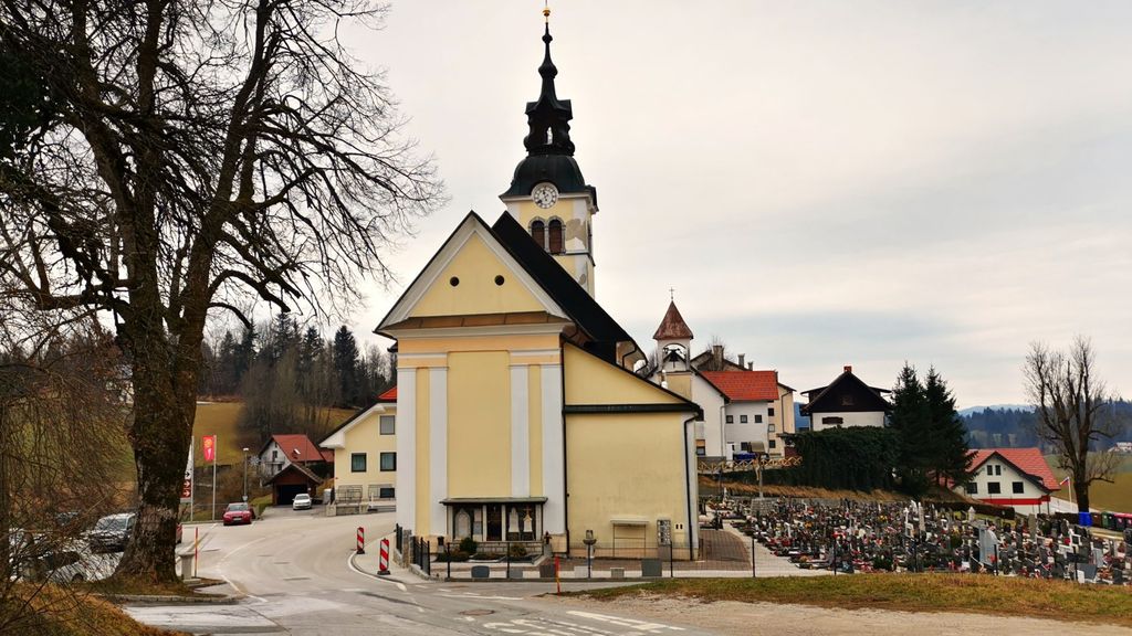 S hriba smo se spustili v dolino proti Rovtam. Po slemenu smo prišli do vaškega jedra, kjer stoji cerkev sv. Mihaela, šola, trgovina in gostilna.