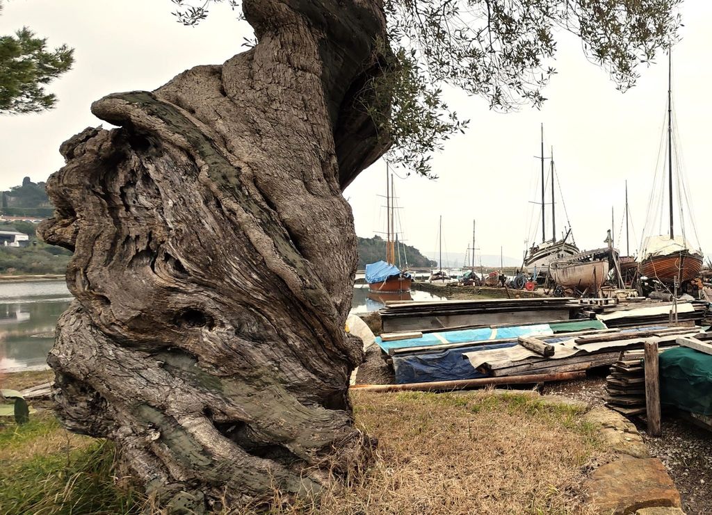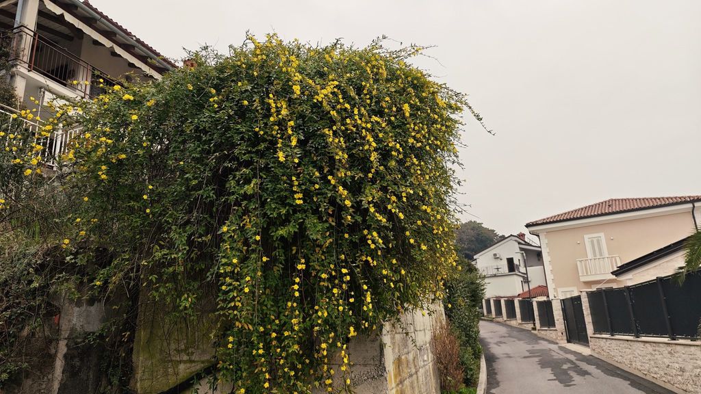 Pot smo nadaljevali navzdol proti Luciji, med hojo in pogovori pa opazovali cvetoče grmičke mimoze, cvetočo rožmarinovo živo mejo, drevesa mandljevca in marelic ter lepe stare nasade oljk.