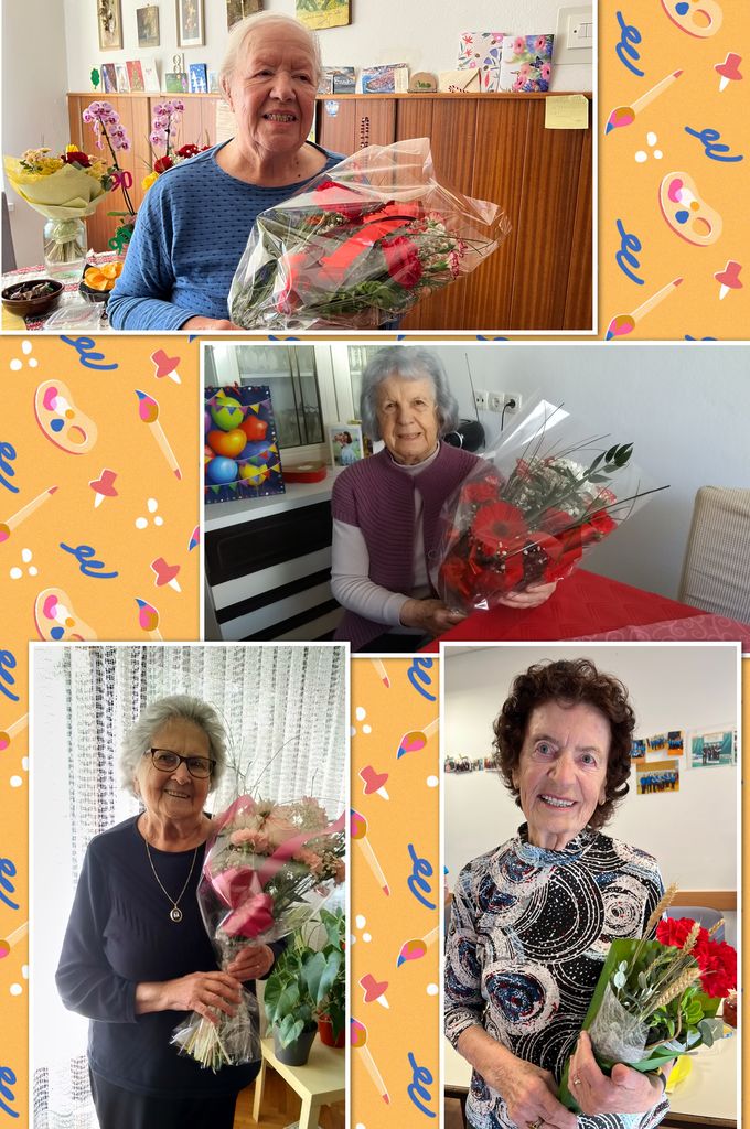 Aprila smo z obiskom, lepimi pozdravi, željami po dobrem zdravju in počutju v imenu vseh članic in članov Društva za častitljivih 90 let razveselile kar pet naših članic. Obiskale smo gospo Kristino Ogrin, gospo Frančiško Tominc, gospo Frančiško Koler, gospo Ano Podobnik(ni slike) in gospo Julijano Turk. Iskrene čestitke vsem za visoki jubilej. Besedilo: Vesna Stare Foto: Vesna Stare, Fani Al-Mansour