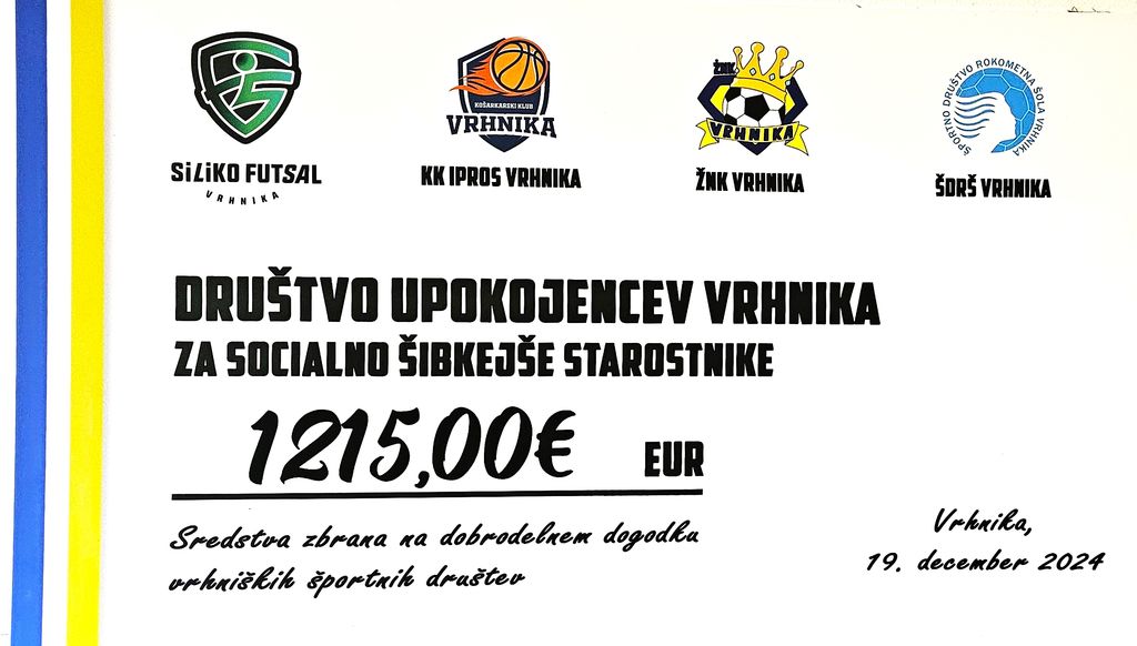 Super ste. Zbrali ste 1.215,00 €, ki jih bomo v Društvu upokojencev Vrhnika