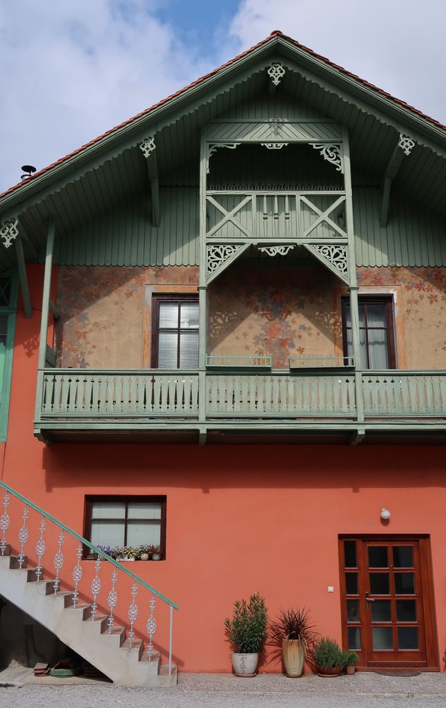 Prvotno je bil balkon z litoželezno ograjo (balustri št. 4b na tabeli 1 zgoraj imenovanega kataloga) le na severni strani stavbe. V zadnjem času se sicer spomeniško zaščitena hiša[8] precej spreminja (sezidane so bile mansarde itd.), lani je dobila tudi nov konzolni balkon (na zahodni fasadi) z litoželezno ograjo, ki je identična tisti na severni fasadi in je bila po besedah lastnika najdena menda nekje v hiši.