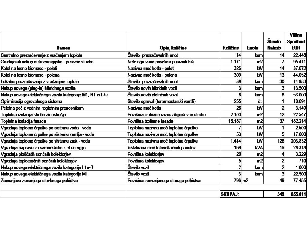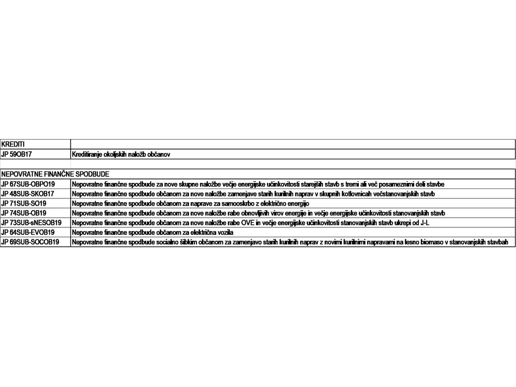Trenutno so v veljavi javni pozivi subvencioniranja naložb občanov in ugodnega kreditiranja, ki so navedeni v spodnji tabeli: