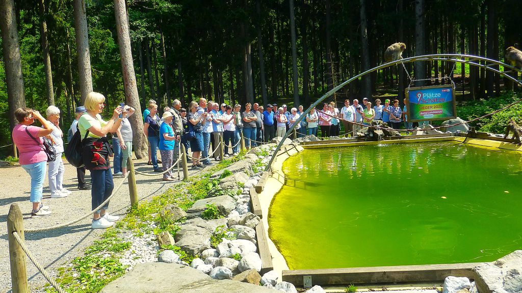 Tik pod gradom se nahaja Opičja gora Affenberg. Tu se na 4,5 hektarjih površine giblje 185 japonskih opic makaki, poznanih kot snežne opice, saj se lahko prilagajajo hladnejšemu podnebju do -20 stopinj Celzija. Opice so zelo igrive in inteligentne. Opazovali smo alfa samce, ki imajo nalogo, da nadzirajo svojo skupino in imajo samo oni pravico do parjenja. Park je poraščen s smrekami, macesni in različnim zelenjem, tako da se prosto gibljejo, lovijo, plezajo, skačejo plavajo v bazenu, včasih pa se tudi med seboj stepejo.