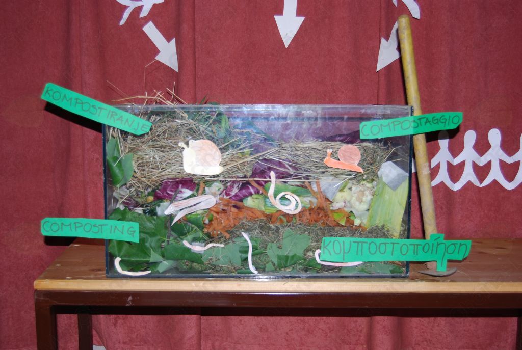 V arboretumu blizu zeliščnega in zelenjavnega vrta imamo dva kompostnika. Najprej polnimo enega, nato tega pustimo od pol do enega leta, da se snovi v njem razgradijo, in medtem polnimo drugega. Organski odpadki iz kuhinje gredo v kompostnik, da jih kasneje uporabimo kot gnojilo za šolski vrt. Na vrtu posadimo nove rastline, ki jih kasneje pojemo ali prodamo na tržnici.