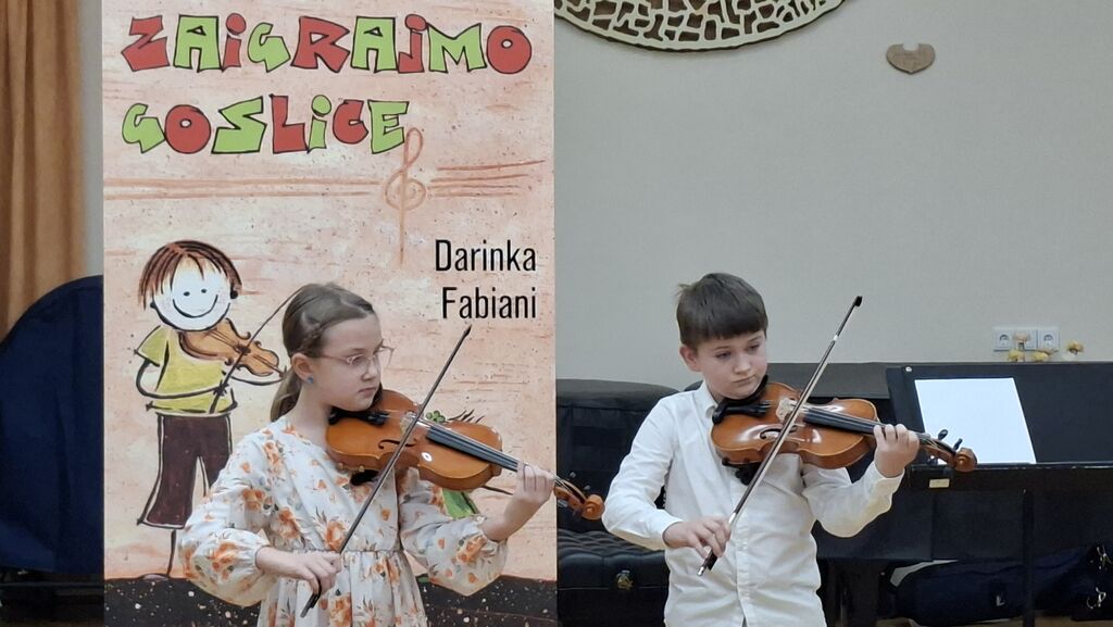 Imenitna koncertna dvorana na Glasbeni šoli Vrhnika je v ponedeljek, 26. januarja, gostila zanimivo glasbeno založniško prireditev. Učiteljica violine Darinka Fabiani in Založba Bogataj sta predstavila drugo dopolnjeno izdajo notne zbirke Zaigrajmo goslice, ki z vključevanjem sodobnih informacijskih kanalov orje ledino na tem področju.