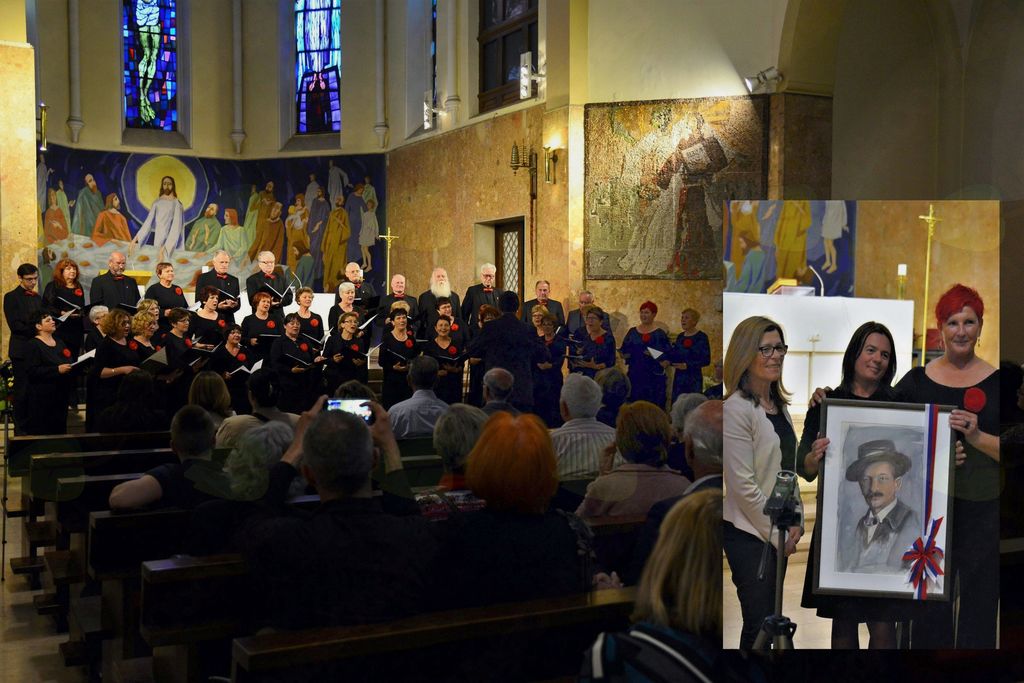 S koncerta v cerkvi sv. Anteja v Sarajevu. Nadja Malovrh, predsednica MePZ IC Vrhnika je izročila predsednici Slovenskega društva Cankar ga. Verici Đindo sliko Ivana Cankarja, ki jo je naslikala naša pevka ga. Emilija Erbežnik. Levo veleposlanica RS v Sarajevu nj. eksc. gospa Zorica Bukinac.