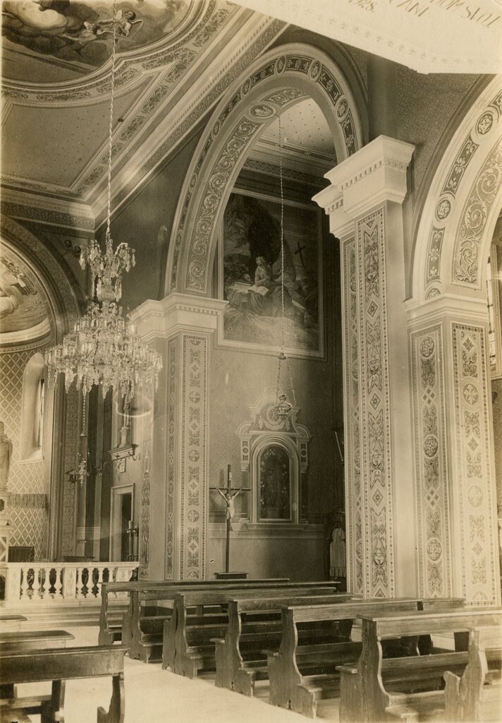 [2] Poslikava ladje (ornamentalno) in dveh kapel (Žigon 1982, n. d., str. 121; Suhadolnik 2001, n. d., str. 45).