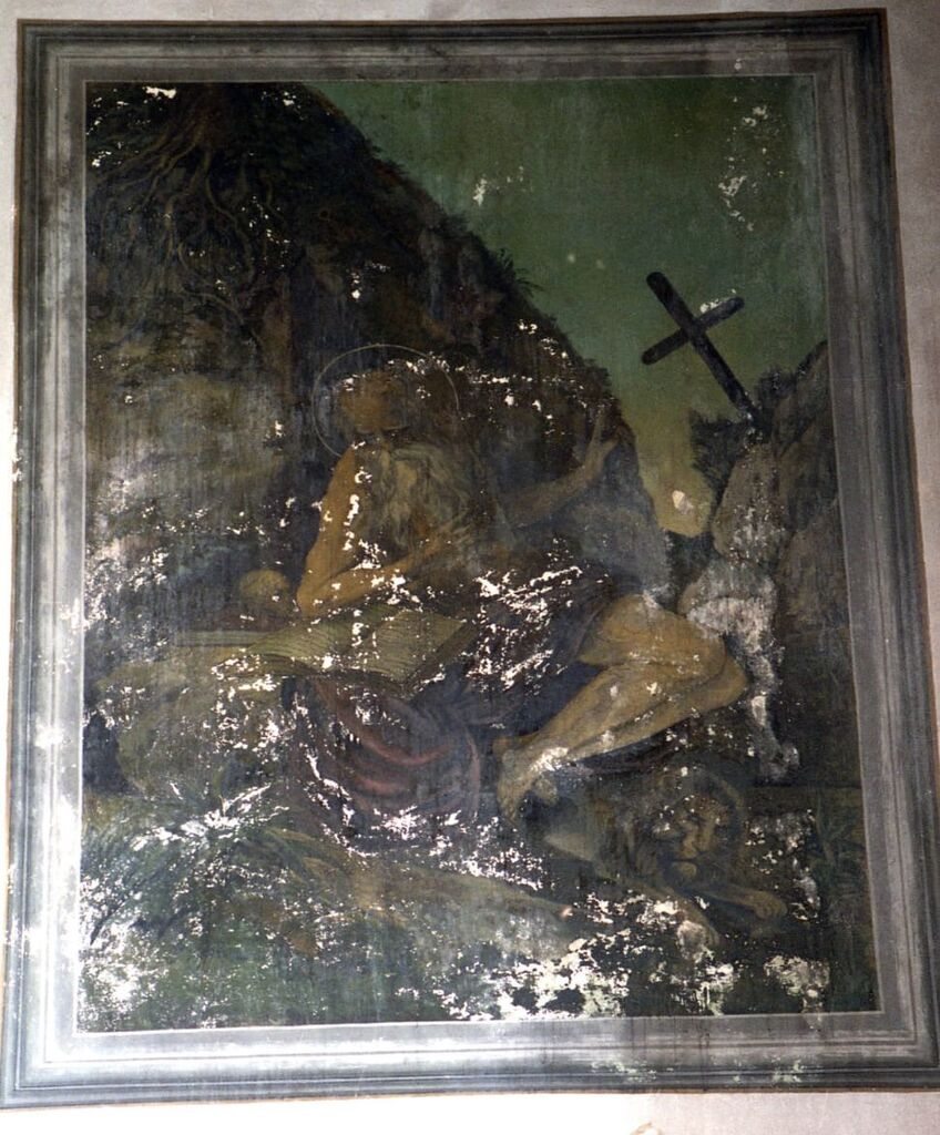 Ogrinove freske so bile kasneje močno preslikane: dvakrat (1948, 1960) jih je »restavriral« soboslikar Stipe Volarević.[13] Ta si je (sodeč po fotografijah iz 1935 in 1995) dovolil veliko »umetniške« svobode, sv. Hieronimu je recimo namesto draperije naslikal razgaljene noge itd.
