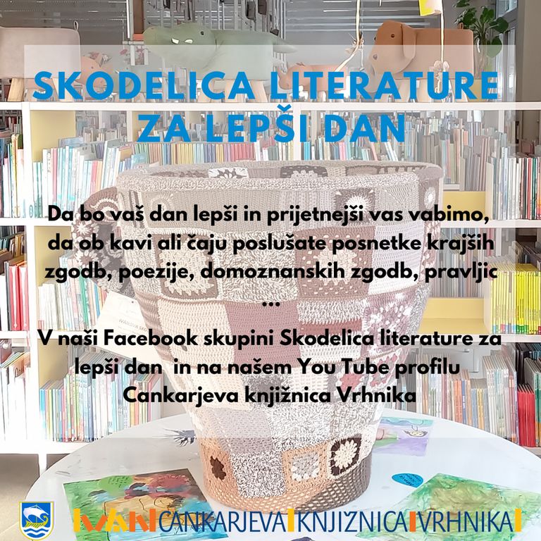 S projektom Skodelica literature za lepši dan smo v Cankarjevi knjižnici Vrhnika začeli v »koronskem« letu 2020. Omogočiti smo želeli stik z literaturo in promovirati branje tudi v času, ko smo bile knjižnice zaprte zaradi epidemije. Osnovna ideja projekta je, da z branjem iz različnih del polepšamo dan sočloveku. Obenem želimo k branju povabiti vse, saj vemo, da branje spodbuja razmišljanje, krepi znanje, spomin in koncentracijo, pomaga izboljšati zdravje in zmanjšuje stres. Želimo si, da bi brale vse generacije, da bi si ljudje knjige izposojali v knjižnicah in jih kupovali. Saj veste, že Tone Pavček je rekel, »Če ne bomo brali, nas bo pobralo.« S knjigami lahko v enem dnevu prepotujemo ves svet, spoznamo zgodovino nekega naroda, nove kulture in običaje; se učimo novih jezikov ali beremo kar tako, za zabavo ali da preženemo dolgčas in osamljenost. Iz kateregakoli razloga že beremo, pomembno je, da beremo!