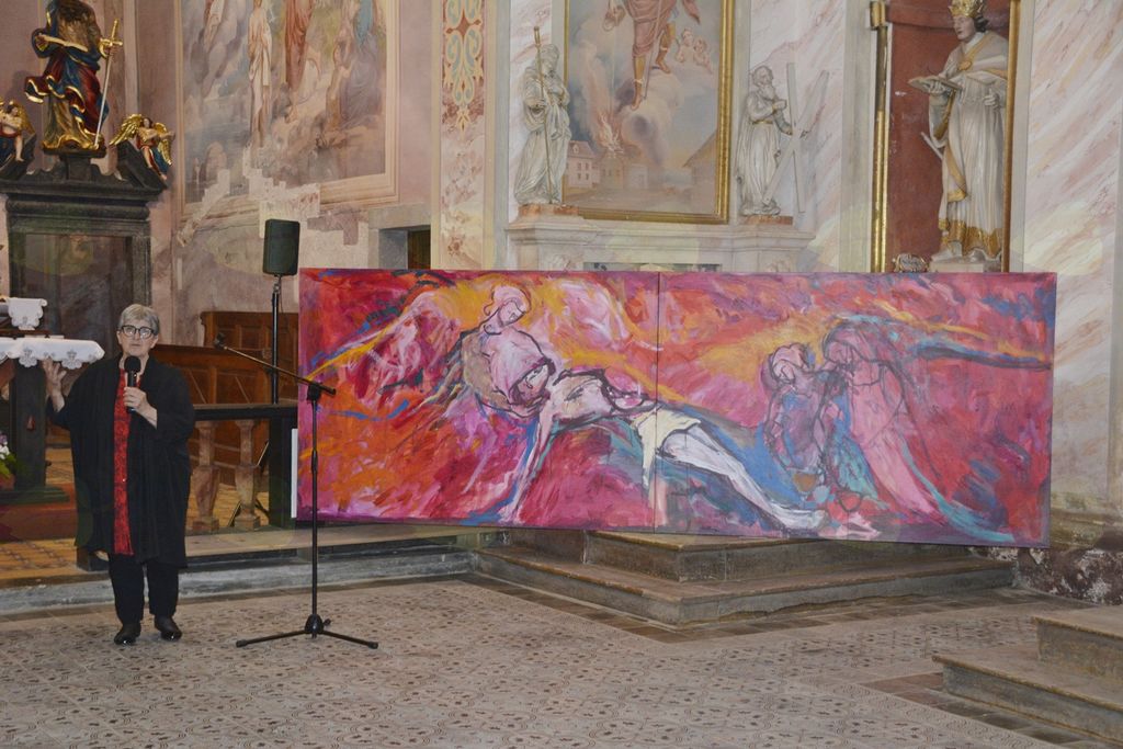 Vrhnika, 9. maj –Na predvečer Cankarjevega rojstva je v Cerkvi na Sveti Trojici nad Vrhniko potekala sveta maša za Ivanom Cankarjem, ki jo je daroval vrhniški župnik Mohor Rihtaršič. Bogoslužje je bilo še toliko bolj slovesno, ker ga je pevsko obogatilo ubrano petje gostujočega Pevskega zbora Antona Foersterja iz Ljubljane. Po koncu maše je sledilo odprtje razstave primorske slikarke Mire Ličen Krmpotić. Njen resen pristop v raziskovanju slikarstva, podkrepljen z nenehnim študijskim izpopolnjevanjem in eksperimentiranjem, odkrivanje različnih slikarskih zvrsti in tehnik ter sočasno neprekinjeno delo na področju restavratorstva in konzervatorstva, ima za posledico obsežen likovni opus. A tokrat se je v cerkvi sv. Trojice predstavljala »le« s štirimi velikimi platni. Eno od njih je nosilo ime Podobe iz sanj, kot se je tudi poimenovala tokratna slikarska razstava na Vrhniki. Kot je dejala avtorica, podoba nagovarja gledalca z upanjem, kot izhaja iz Cankarjeve zgodbe Podobe iz sanj. Tudi sicer je njen celoten predstavljeni opus na odprtju predstavil Silvester Gaberšček, etnolog in sociolog, kot žarek upanja, »nekaj vedrega, ki pritegne.«