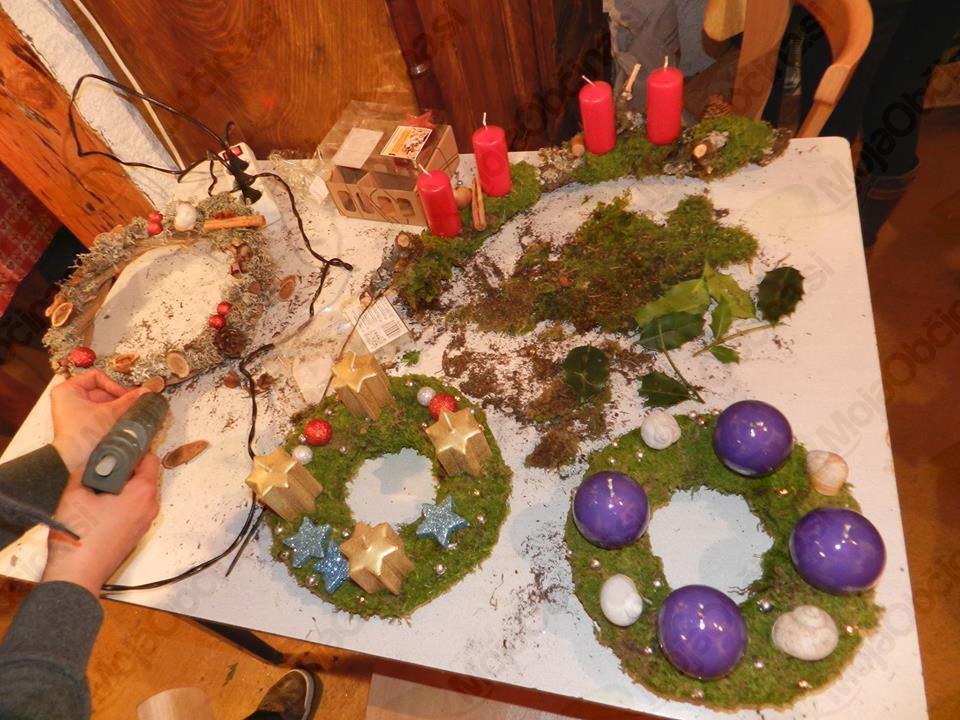 Iz različnega zelenja, ki smo ga vpletali na pripravljene obode, so nastali številni venčki, ki smo jih okrasili s svečami in drugimi okraski. Delavnice se je udeležilo veliko otrok in odraslih, ki so radi priskočili na pomoč najmlajšim, kajti izdelava venčka zahteva kar nekaj ročnih spretnosti.