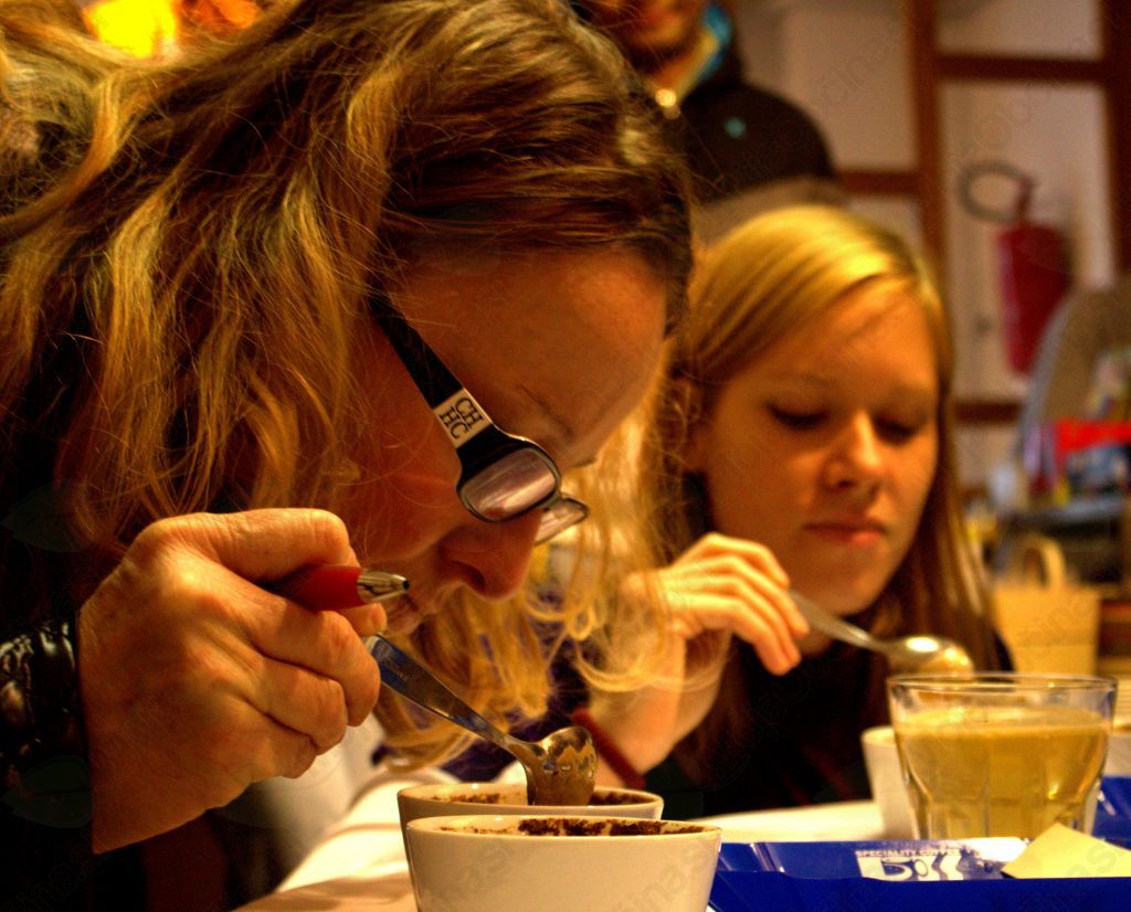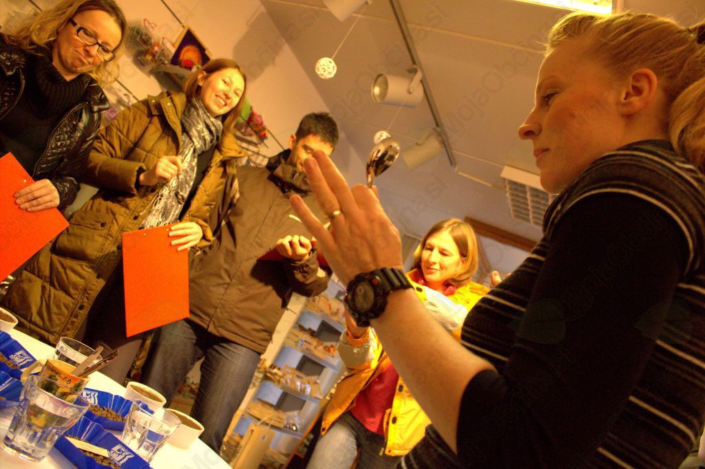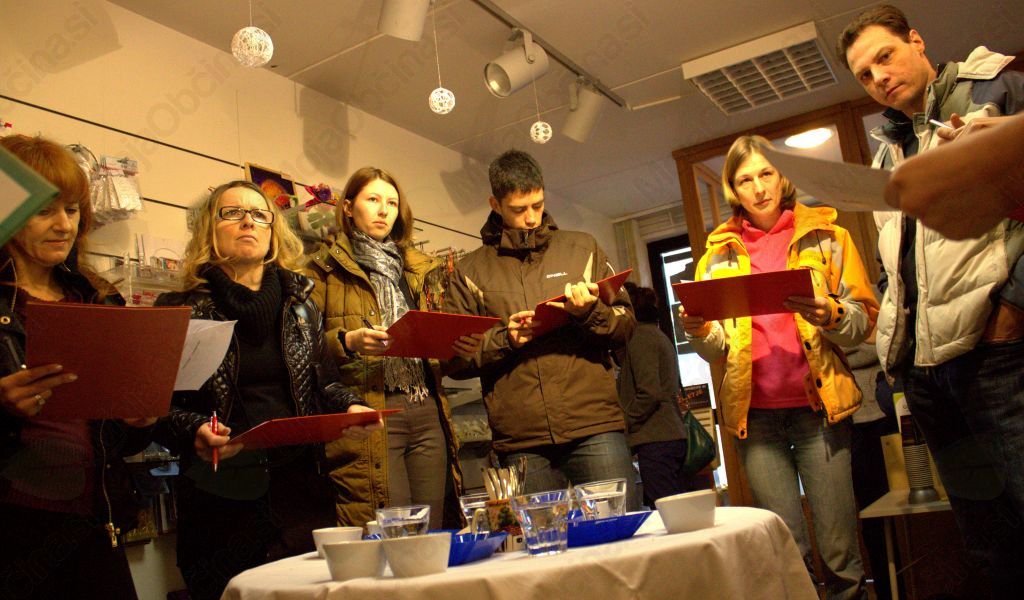 Obiskovalci so se tekom delavnice seznanili s protokolom okušanja kave in tudi sami preizkušali različne arome in okuse. Tako je bilo na delavnici kavo možno vonjati,«srkati« in se prepuščati njenim čarom. »Coffee cupping« je v svetu že ustaljena praksa, ki jo uporabljajo predvsem v industriji kave, lahko pa jo izvaja kdorkoli, ki želi preko lastnih senzornih zaznav razširiti svoja obzorja in se prepričati, katera kava je res dobra. V Studiu Zlata ptica so tokrat predstavili kar štiri kave, ki so bile vse "single origin", kar pomeni, da so opremljene z geografskim poreklom in prihajajo iz istega kavnega nasada. Tako je bilo možno okusiti Nikaragvo Finca El Pinabet, Brazilijo Pico Mirante, Kostariko Kafetalera Zamora in Etiopija Sidamo. Med udeleženci je bilo ves čas delavnice slišati besede zadovoljstva: "mmmmmm", "tale pa je res dobra", ali pa "tejle bom pripisal zelo dobro oceno", nemalo pa je bilo tudi takih, ki so kavni požirek kar nekaj časa prepuščali okušalnim brbončicam, na koncu pa dodali, da ima kava poleg dobrega okusa dober tudi pookus. Na obrazcu za vrednotenje kav je bilo med drugim možno oceniti tudi teksturo, prisotnost kislin, ravnotežje in splošni vtis kave, tako da je mrzel sobotni dan minil v znamenju okusov, katerim bi se še Ivan Cankar verjetno prepustil, če bi mu jih med pisanjem servirala njegova mati.