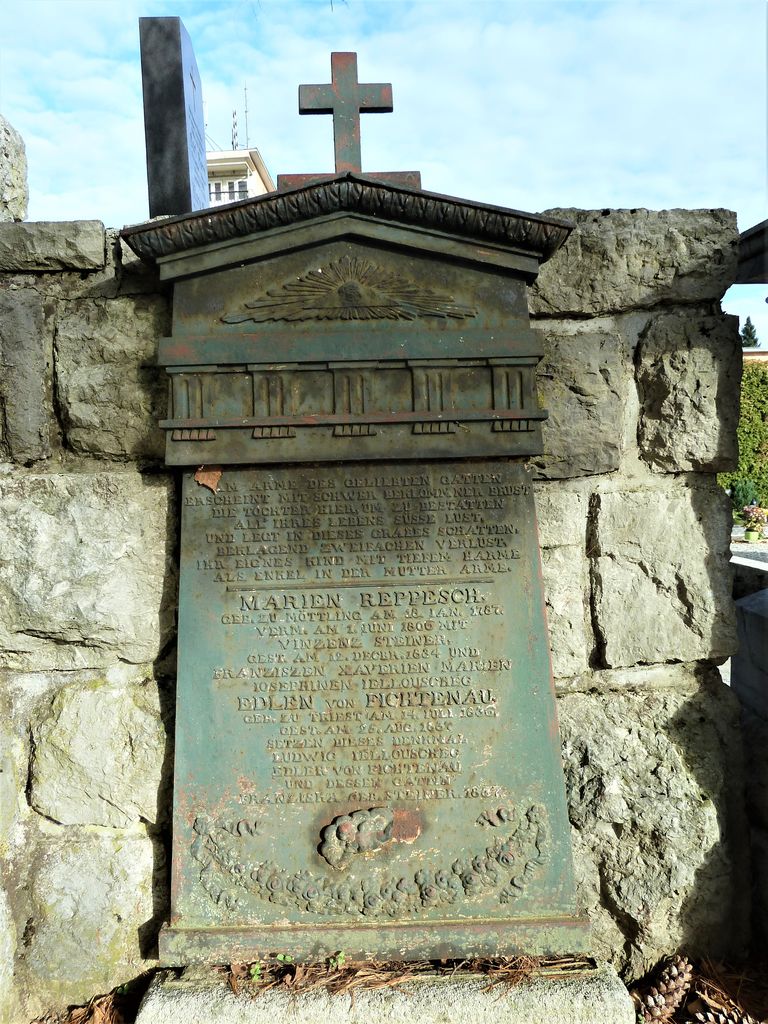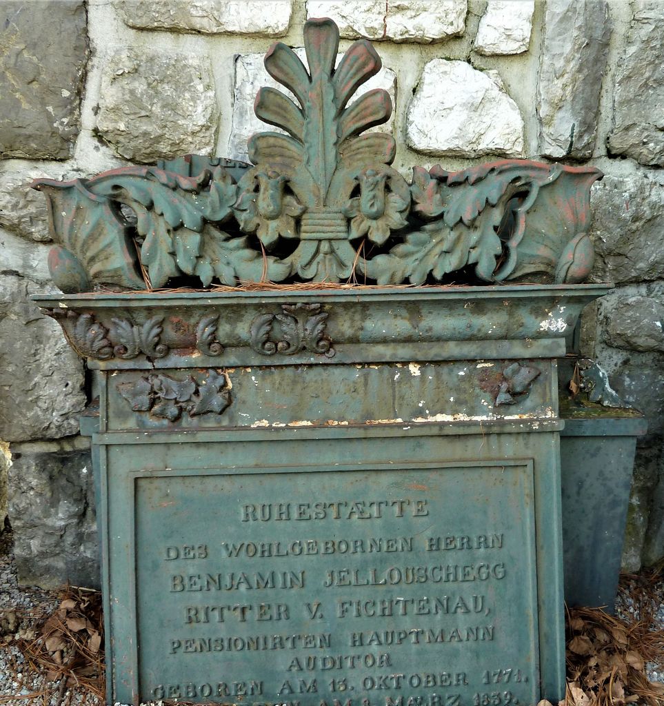 Na pokopališču v Ločni[1] sta na grobu rodbine Jellouschek (Jelovšek)-Fichtenau mdr. dve litoželezni nagrobni plošči, tja preneseni sekundarno, ko se je tam v dvajsetih letih prejšnjega stoletja na prostoru vojaškega pokopališča formiralo mestno pokopališče, ki je bilo od 1810 na nekdanjem kapucinskem vrtu.