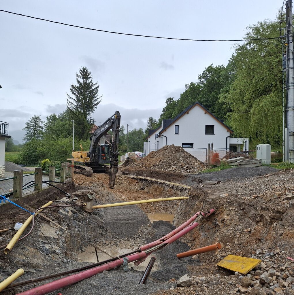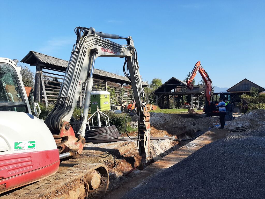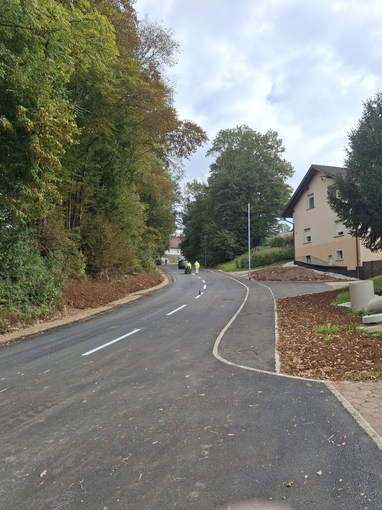 Komunalne gradnje, Hidrotehnik in nekaj podizvajalcev je septembra lani začelo z gradnjo celotne infrastrukture – fekalno kanalizacijo, vodovodom, rekonstrukcijo ceste z odvodnjavanjem meteorne vode, betoniranimi ali kamnitimi škarpami, pločniki, cestno razsvetljavo in postavitvijo treh avtobusnih postaj oziroma nadstreškov – v vrednosti del 4,3 mio EUR in rokom zaključka del 30. 6. 2025.