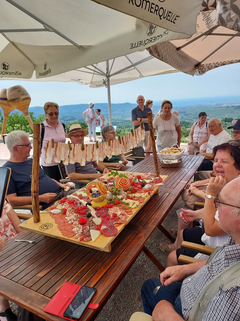 dobrimi sladicami in sladoledi z okusom vin. Rdeči vinski bus pa je na voljo za prevoz turistov na njihovo destinacijo. Domačini so res pravi promotorji svojega kraja. Kljub velikim zastojem na primorski cesti, smo se po dobrih dveh urah le pripeljali na Vrhniko in se zahvalili za odlično organizacijo čudovitega izleta. Še dva dopustniška poletna meseca nas ločita donaslednjega dvodnevnega izleta po Slavoniji, do Daruvarja.
