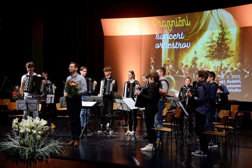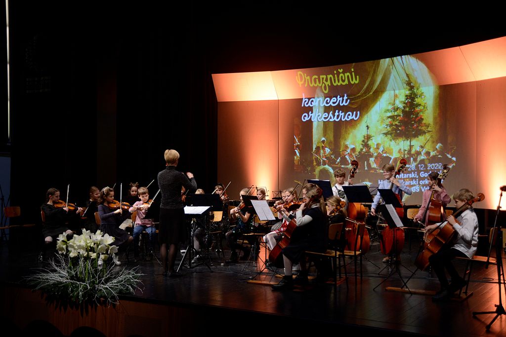 Vrhnika, 20. december – Orkestri Glasbene šole Vrhnika se že več let ob koncu koledarskega leta na velikem odru osrednjega kulturnega hrama na Vrhniki predstavijo občinstvu. Na torkovem »Prazničnem koncertu orkestrov«, kot so poimenovali dvodnevno prireditev (v ponedeljek sta predstavila veliki godalni in pihalni orkester), so se predstavile tri zasedbe: kitarski (vodja: Pavla Lučin Kolman), mali godalni (vodja Nina Demšar) in harmonikarski orkester (vodi: Miha Plavčak). Nastopi so bili podprti z izdatnim aplavzom publike, kar potrjuje dobro delo vrhniške glasbene šole. Njena ravnateljica Dominika Naveršnik je dejala, da je vodenje orkestrov zelo kompleksno delo. »Ponosna sem, da nam to dobro uspeva. Ni lahko najti dobrega učitelja. Nikogar ne želimo prisiliti v to, kajti terja motiviran pristop učitelja, ki mora v tem videti poslanstvo in možnost za osebni razvoj.«