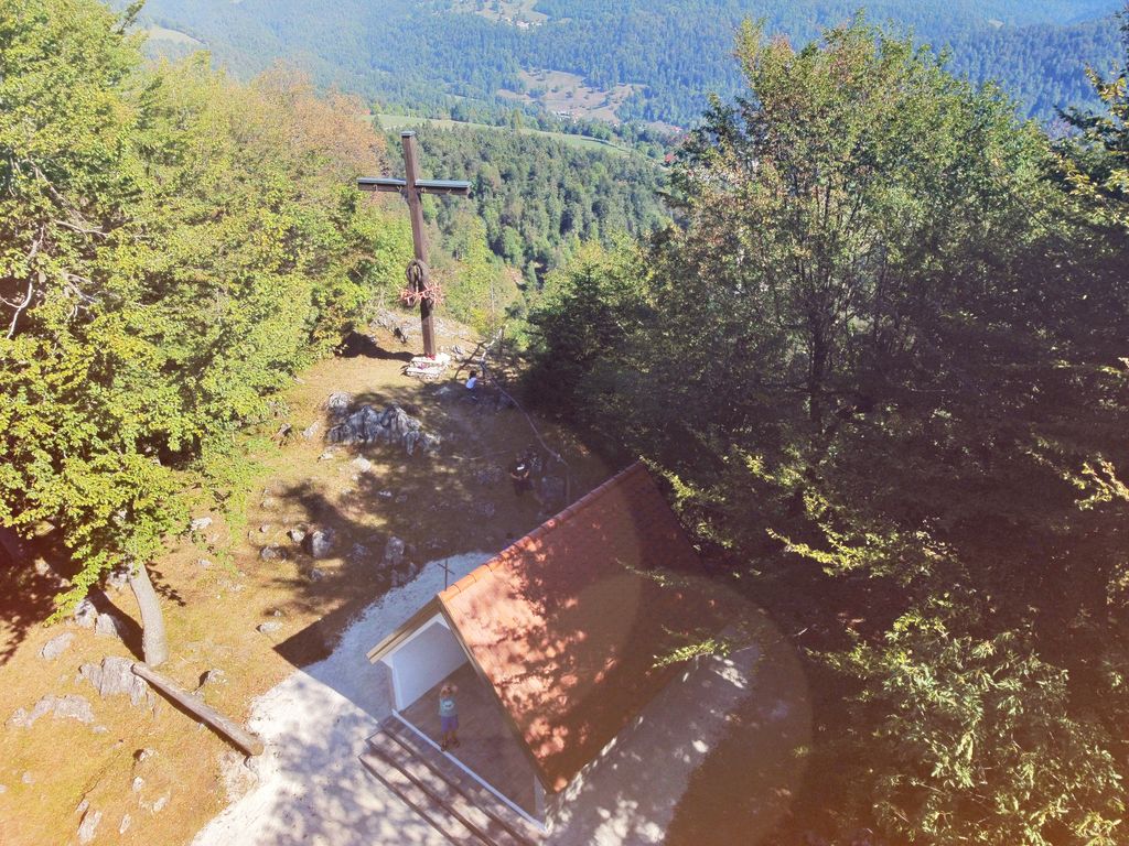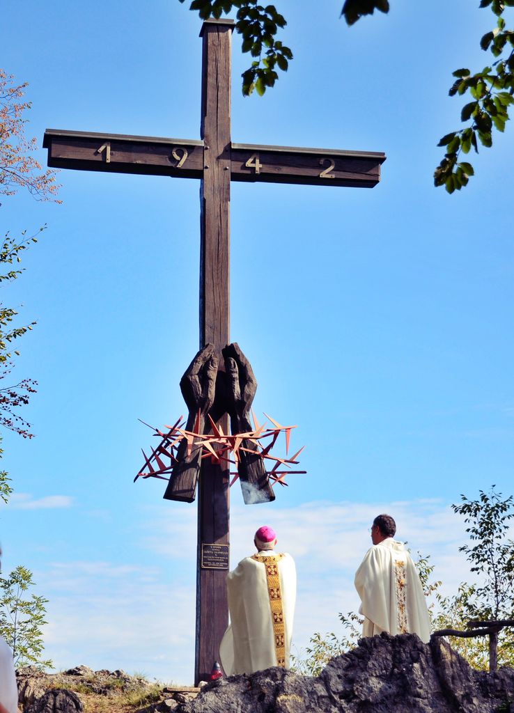 Na robu pečin od leta 2000 že stoji sedemmetrski križ s skulpturo rok, ki ga je