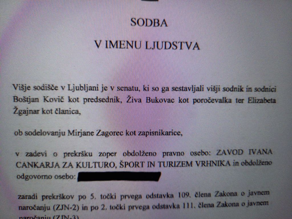 Absolutno zavračam vsa namigovanja in neresnice, ki jih v svojem pismu navaja g. Močnik. Občina Vrhnika ne skriva kazni kot že v samem naslovu trdi g. Močnik. Kljub temu, da Občina Vrhnika ni prejela kazni, je že več kot eno leto nazaj zagotovila javno objavo sodbe kot del gradiva 11. redne seje, 12. 11. 2020. G. Koprivec se je tudi udeležil 9. redne seje sveta Zavoda Ivana Cankarja Vrhnika, kjer je javno priznal svojo napako in se zanjo opravičil. Poleg čisto človeške odgovornosti, je prevzel tudi odgovornost za svojo krivdo tako, da je kot odgovorna oseba plačal globo. Čeprav zavrača očitek o nezakonitosti, saj je pri naročilu precenil, da obstajajo razlogi po 2. točki prvega odstavka 29 člena ZJN-2 oz. iz 2. alinee c točke prvega odstavka 46. člena ZJN-3, spoštuje odločitev sodišča in zagotavlja, da bi pri ponovnem naročilu postopal bolj konzervativno. Dejstvo pa je, kar je zagovarjal g. Koprivec, da je bil npr. tisk 64 strani pred javnim naročilom 798,26 € nižji kot po izvedbi le-tega. Osebno ocenjujem, da se ni želel izogniti naročilu in da ga je pri odločitvi vodila zgolj želja, da zavod in posledično občinam privarčuje čim več denarja. Kar se je tudi dejansko zgodilo. Ravno očitek, da sva bila predhodno sodelavca, mi daje izjemno dober pogled nanj. Poznam njegovo delo, entuziazem, strokovnost, požrtvovalnost, profesionalnost, delavnost, razgledanost, optimizem, poštenost, pravičnost ter nenazadnje integriteto. Vem, da zdrži izjemne pritiske, saj jih je bil osem let deležen praktično vsak dan. Imel je preko 40 različnih inšpekcijskih pregledov in revizij, nešteto poročanj in zagovarjanj na občini ter po moji oceni osebnega nadlegovanja. Človek, ki toliko dela, naredi tudi kakšno napako ali sprejme napačno odločitev. V luči njegovega truda in vztrajnosti sem vesel in hvaležen, da se je prijavil na razpis za direktorja ter pred komisijo dosegel najvišje število točk. V kratkem času enega leta na občini so vidni rezultati. Poleg vsega rednega dela je že prvi mesec odprl občinski profil na družbenih omrežjih, ki jih praktično ureja sam. Lotil se je projekta, ki so ga prejšnji direktorji odlagali – prenova spletne strani. Z vso vnemo je začel vodi projekt Strategije razvoja občine Vrhnika 2030, ki je sedaj v zaključni fazi in se ga njegovi predhodniki niti niso upali lotiti. Sodeluje pri reševanju problematike odprave nezakonitosti v odlokih in družbeni pogodbi Javnega komunalnega podjetja Vrhnika. Lahko bi našteval v nedogled. Trudi se delovati povezovalno in vzdušje med večino zaposlenih na občini je mnogo boljše, kar lahko kadarkoli preverite. Vse navedeno mnogokrat odtehta navedeno odločitev iz leta 2017. Zaradi vsega navedenega absolutno zavračam populistično posploševanje g. Močnika, češ »da javni uslužbenci kršijo zakone« in da na občini »zagovarjamo nezakonito delovanje«. To je podobno, kot bi za globo za napačno parkiranje zahtevali, da nekdo ostane brez izpita. Kdor naredi napako, je prav, da se ga sankcionira, da je potem ne naredi več.