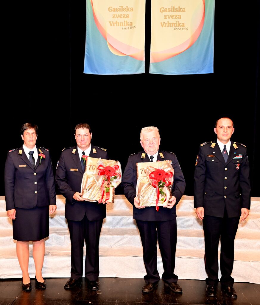 Za dolgoletno delo na področju vodenja Gasilske zveze Vrhnika sta posebno zahvalo prejela častni predsednik Vinko Keršmanc in poveljnik Benjamin Svenšek. Njuni prispevki so nemerljivi – nimajo cene in se jih na noben način ne da poplačati. Sta človeka, ki iščeta rešitve in nove ideje ter s tem utirata pot drugim. Za sabo puščata široko cesto strokovnih rešitev in urejenih odnosov.