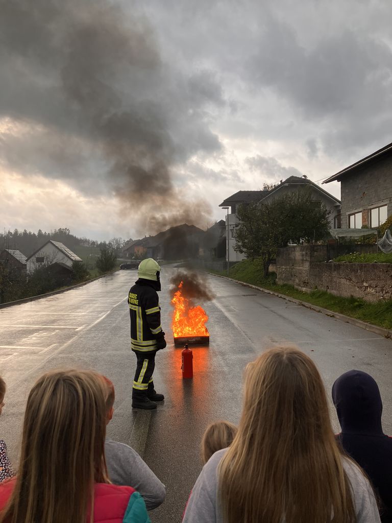 Kolikor so trenutki med dežnimi nalivi dopuščali, sta Peter in Aleš izvedla prikaz gašenja ognja z gasilnikom na prah. Prijeti gasilnik v roke, doživeti izkušnjo aktivacije gasilnika in predvsem tehnike gašenja ognja je nekaj, kar bi moral osvojiti vsak človek. Zavedanje, da v trenutku požara zmoreš in znaš ukrepati, je pogosto tisti moment, ki odloča o uspešnosti tega dejanja. Zato je priporočljivo večkrat ponavljati vajo gašenja.