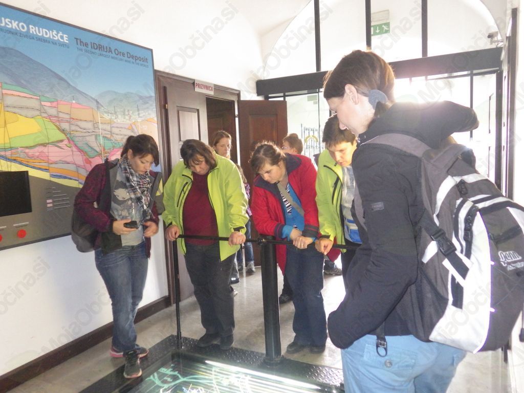 Pri prihodu v Idrijo smo kot po naključju najprej srečale njihove gasilce, ki so izvajali požarno varovanje tekmovalcev 8. rally Idrija. Naš prvi pravi postanek je bil ogled Antonijevega rova - rudnika živega srebra. Ob pogledu na vse rove, ki so jih generacije knapov izkopale globoko v podzemlje smo se spraševale, kako lahko Idrija sploh še stoji. Vodič Jože nam je razložil, da je veliko podzemnih hodnikov zasutih, ostale pa redno vzdržuje ekipa še zaposlenih v rudniku. Vodič nas je popeljal skozi 500 letno zgodovino kopanja živega srebra. Približal nam je življenje knapovskih družin, kjer so moški večino časa preživeli pod zemljo in kopali rudo. Da so se nadihali svežega zraka pa so vsake toliko časa odšli tudi v okoliške gozdove in tam pomagali pri pripravi lesa, ki so ga potrebovali za obratovanje rudnika. Ženske in otroci so za dodatek skromnemu družinskemu proračunu izdelovali čipke.
