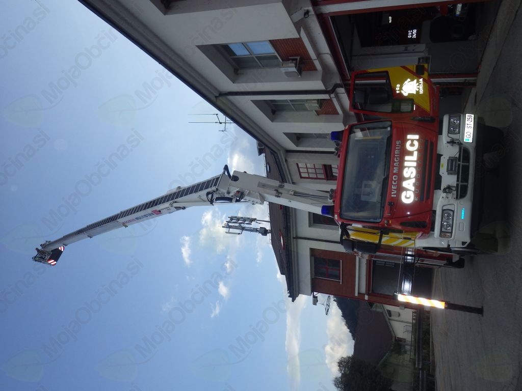 Za poslastico smo se odločile obiskati idrijske gasilce. Njihovo Prostovoljno gasilsko društvo razpolaga z kar lepim voznim parkom in številčno ekipo gasilcev. Velikodušno so nam razkazali svoje prostore in opremo. Seveda pa nam je bila daleč najbolj zanimiva izkušnja dviga z gasilsko lestvijo. Tako smo lahko dobro videle Idrijo tudi iz zraka.