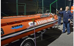 Slavnostni trak na novem plovilu je prerezal župan Stojan Jakin, ki mu je obenem pripadla tudi čast, da ga je pobrizgal s šampanjcem.