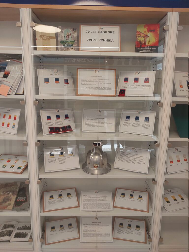 Razstava je v mesecu septembru in oktobru postavljena v knjižnici dr. Marje Boršnik v Borovnici. V novembru in decembru se razstava seli v Cankarjevo knjižnico na Vrhniki. Z razstavo, bi radi širši javnosti predstavili vpogled v notranjo strukturo slovenskega prostovoljnega gasilstva. Tako kot poznamo v vojski različne čine, jih imamo tudi v gasilstvu. Pridobitev le teh pa je povezana z izobraževanji in različnimi tečaji. Vodenje gasilskih organizacij, pa je na vseh ravneh od gasilskih društev, do gasilske zveze Slovenije prepuščeno poveljnikom in predsednikom teh organizacij. Vljudno vabljeni, da se ob obisku knjižnjice ustavite tudi pri razstavni vitrini. za GZ Vrhnika, Ciril Trček