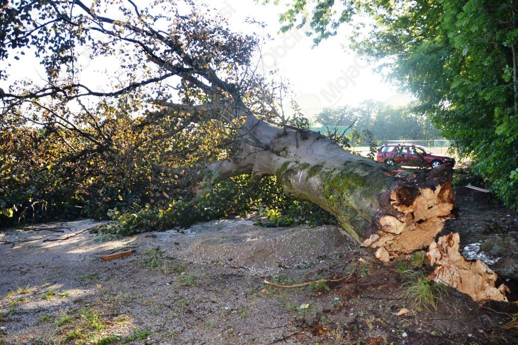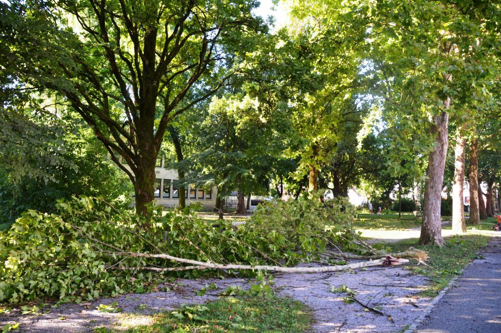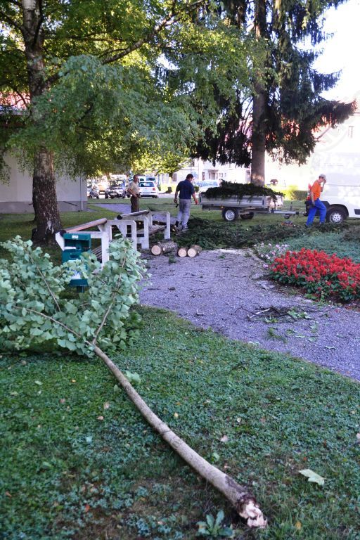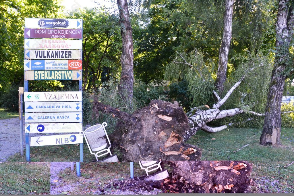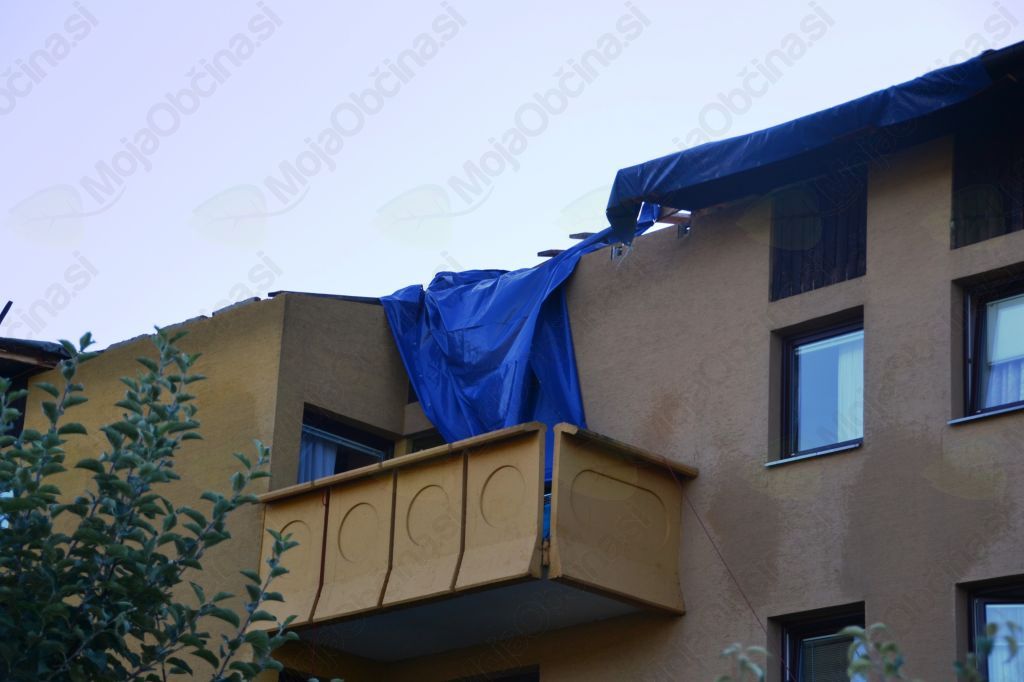 A vse le ni ostalo pri podrtih drevesih. Verjetno jo je najbolj skupil Dom upokojencev, kjer je odkrilo okoli250 kvadratnih metrovstrehe, gasilci pa so jo kmalu za tem prekrili s ponjavami. Z rezervnimi strešniki so prekrili še objekt v Sinji Gorici, Kotnikovi cesti, Kačurjevi cesti in na Cesti na Barje.