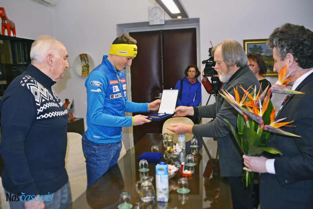 »Ponosen sem nate. Nisi prvi smučar z Vrhnike, si pa najboljši,« so bile besede župana Stojana Jakina, ko mu je segel v roke in predal priznanje v družbi predsednika vrhniške športne zveze Gvida Mravljaka. Na sprejemu sta bila navzoča še direktorica občinske uprave Vesna Kranjc in Štefanov dedek Leon Marjan Možina, sicer do nedavnega dolgoletni predsednik Smučarskega društva Vrhnika.