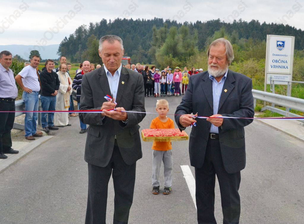 Bevke, Log, 19. september – Župana občin Vrhnika in Log-Dragomer sta prerezala slavnostni trak in tudi uradno predala svojemu namenu na novo asfaltiran cestni odsek med Bevkami in Logom.