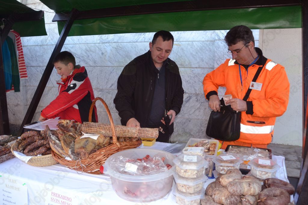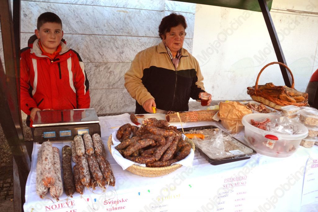 Prvega dne so stojničarji zasedli deset stojnic, na njih pa so obiskovalci lahko izbirali med domačimi suhomesnatimi pridelki, zelenjavo, medom in zelišči. Kar dva sta prišla iz Butajnove nad Horjulom, ki sta ponujala pretežno suhomesnate izdelke: Tone Krek pretežno nojeve, Boris Mrvar pa »klasične«. Slednji je že prekaljen maček v prodaji na tržnicah, saj Vrhničanom in drugim ponuja suhe mesnine že več let. »Obredel sem že tričetrt Slovenije in točno vem, kaj ljudem ponudit. Najboljši dnevi za prodajo so petki ali sobote, torki so veliko slabši.« Stojnico naprej je dišalo po siru, ki ga pridelujejo na Kmetiji Božeglav v Sežani. Gospod, ki je hitel obiskovalcem rezati sir za pokušino, je dejal, da se je odločil, da poskusi s prodajo tudi na Vrhniki. »Pri nas doma smo se že pred leti ukvarjali s sirarstvom in poželi veliko nagrad, potem smo ga za nekaj časa opustili, sedaj pa ga ponovno obujajo mladi.« Kislo mleko, jogurti in siri so hitro premamili prve mimoidoče, da so segli po denarnici in poskrbeli za bogatejšo večerjo. Ne vem, če so jo »začinili« še z zelenjavo, vsekakor pa so imeli možnost, kajti stojnica od Kmetije Zalar z Gabrč je bila polno založena. Kot je dejala Renata Zalar, prodaja zelenjavo, tako na palec rečeno, že šest let. »Vrhnika je še podeželska in prenese od enega do dva zelenjavarja na tržnici, dosti več pa že ne.« Pravi, da v hladnejšem delu leta gre prodaja bolje od rok, kajti poleti si številni pridelajo zelenjavo na lastnem vrtu. »Takrat se moramo znajti kot vsak trgovec, in sicer svojo ponudbo kombiniram s ponudbo drugih ponudnikov in na ta način poskušamo pritegniti pozornost kupcev.«