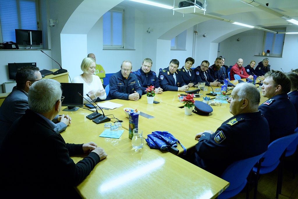 Vrhnika, 13. december – Župan Daniel Cukjati je v družbi s podžupanom Mirkom Antolovićem v sejni sobi sprejel občinske predstavnike sil zaščite in reševanja – civilno zaščito, prostovoljne gasilce, planinsko društvo, skavte, tabornike, Karitas in Rdeči križ. Zahvalil se jim je za požrtvovalno delo in obljubil finančno podporo tudi v prihodnje. Hkrati je obelodanil še svežo vest, ki se najbolj dotika gasilcev iz Vrhnike in Stare Vrhnike, da zemljišče na območju bivše vojašnice na Stari Vrhniki čaka samo še podpis vlade, zemljišče na Mokricah pa je v postopku razgovorov s prodajalcem. Zemljišči sta namreč predvideni kot potencialni zemljišči za nov gasilski dom ali »gasilski center«. Predsednica vrhniške gasilske zveze Andreja Lenarčič in poveljnik zveze Benjamin Svenšek sta se zahvalila za posluh občine ter hkrati tudi gasilskim enotam, ki so se v iztekajočem letu velikokrat izkazali. Več o tem sta spregovorila poveljnik Civilne zaščite Vrhnika Peter Rodič in njegova namestnica Nataša Čož, ki sta na hitro preletela večje dogodke ter zaključila, da bi lahko bilo slabše (v primeru industrijskih požarov), če ne bi bili gasilci tako dobro izurjeni in opremljeni. Slišati je bilo tudi pohvale na račun občine, da se je lotila čiščenja vodotokov.