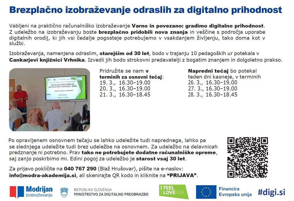 Brezplačno izobraževanje odraslih za digitalno prihodnost