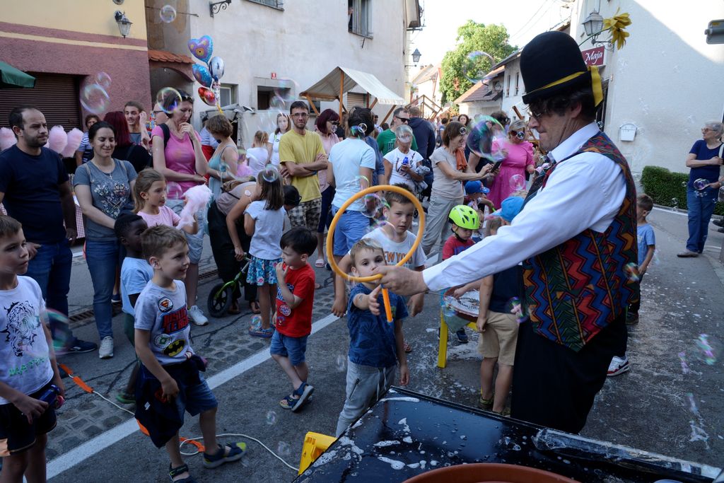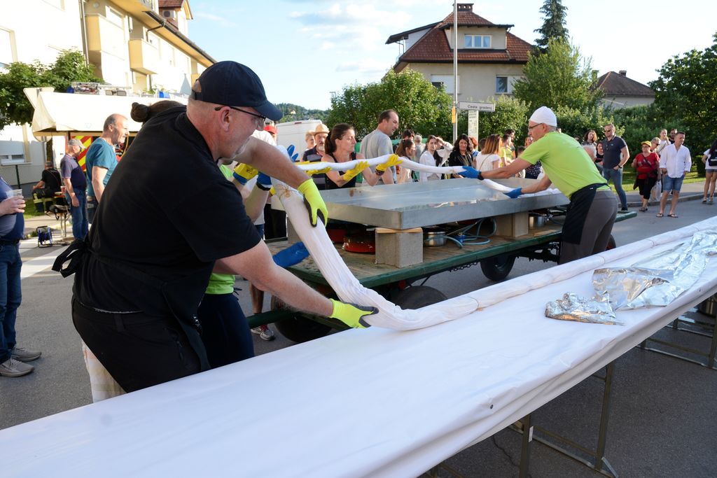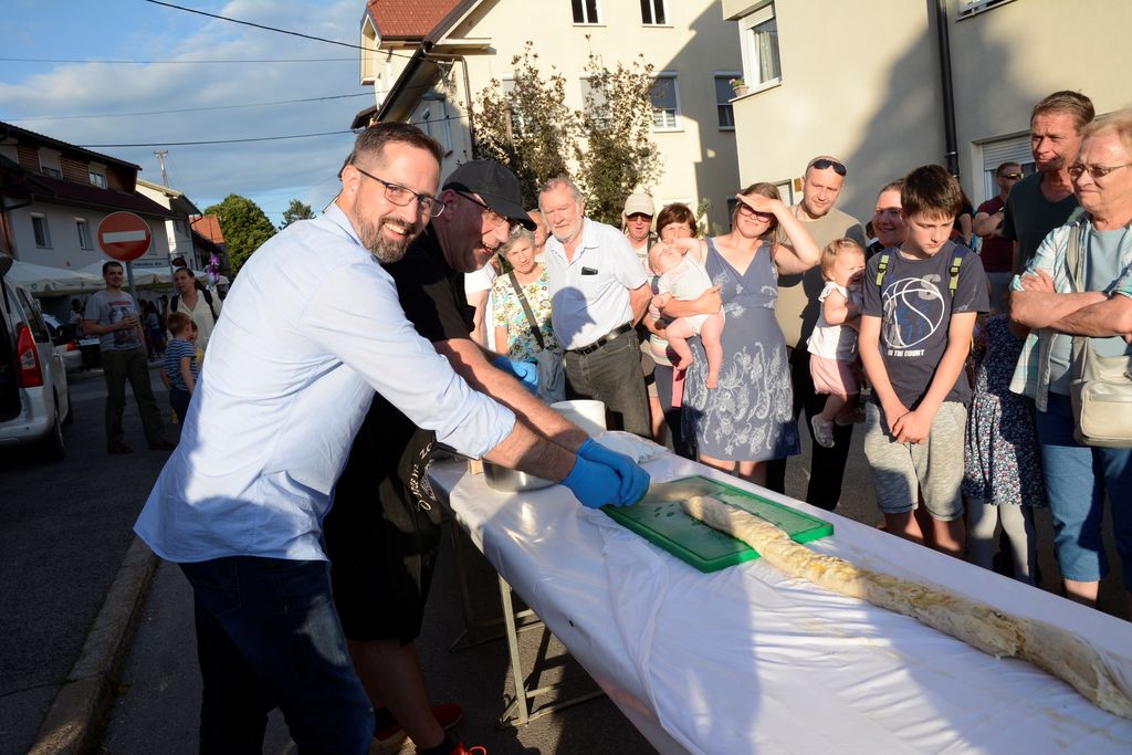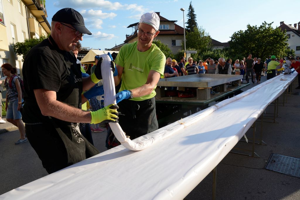Vrhnika, 10. junij – Drugi dan Argonavtskega festivala je zaznamoval tako imenovani »Dionizov petek« na Stari cesti, kjer se dobro je, pije in veseljači. Letos sicer ni sodelovalo toliko društev, kot pretekla leta, ko so kuhali golaže in obare, je pa namesto njih bilo mogoče okusiti več ulične hrane z vrhniškega in širšega območja: hamburgerje, telečja reberca, miške, pice … Zagotovo se je našlo za vsak okus nekaj, kot tudi na področju osvežilnih pijač, kjer ni manjkalo koktajlov, gin-tonicov ter seveda mrzlega piva. Skoraj v vsakem trenutku se je na ulici nekaj dogajalo, od plesnih in glasbenih nastopov, do spremljanja peke orjaške, 30 kg, pleskavice in kuhanja najdaljšega vrhniškega štruklja na svetu. Njegovih 23 metrov je našlo pot v želodce gostov v pičlih petnajstih minutah. Otroci so se lahko zabavali z milnimi mehurčki in ustvarjali, dokler jih ni zvečer premagala utrujenost. A za odrasle se je prava zabava tedaj šele začela, saj se je z odrov zaslišala živa glasba, še vedno pa se je pilo in jedlo. V prijetni večerni topli sapici, ki je zavela čez Staro cesto, se je zdelo, kot da je končno zadišalo po poletju …